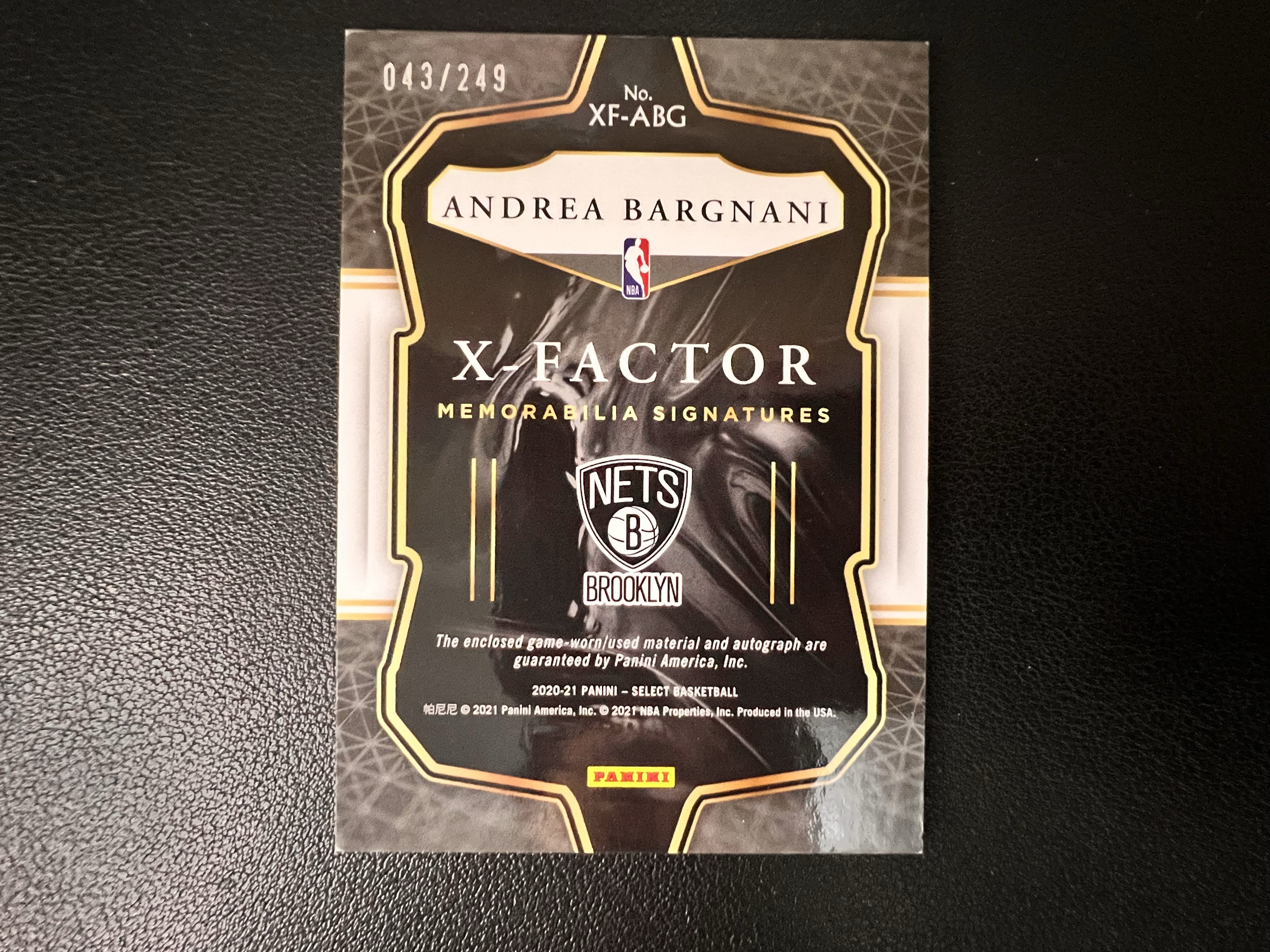 2020-21 panini select Andrea Bargnani 篮网 安德里亚 巴尼亚尼 签字 球衣 物料 043/249编 瑕疵看图 【亮