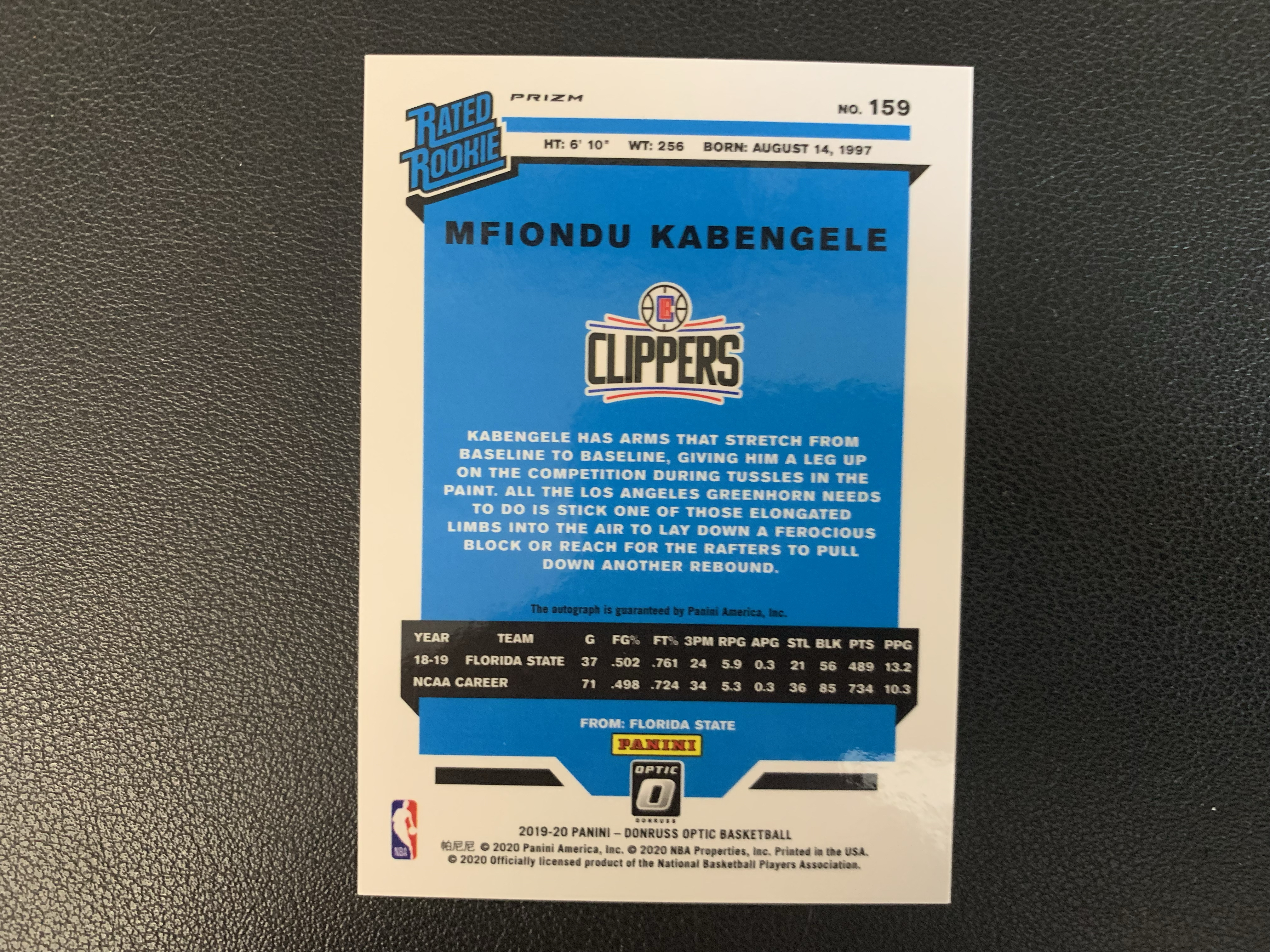 2019-20 Panini Donruss Optic Mfiondu Kabengele RC 杜蕾斯 OP 卡本盖莱 快船 新秀 RC 签字 卡签 新秀签银折 卡品如图【亮