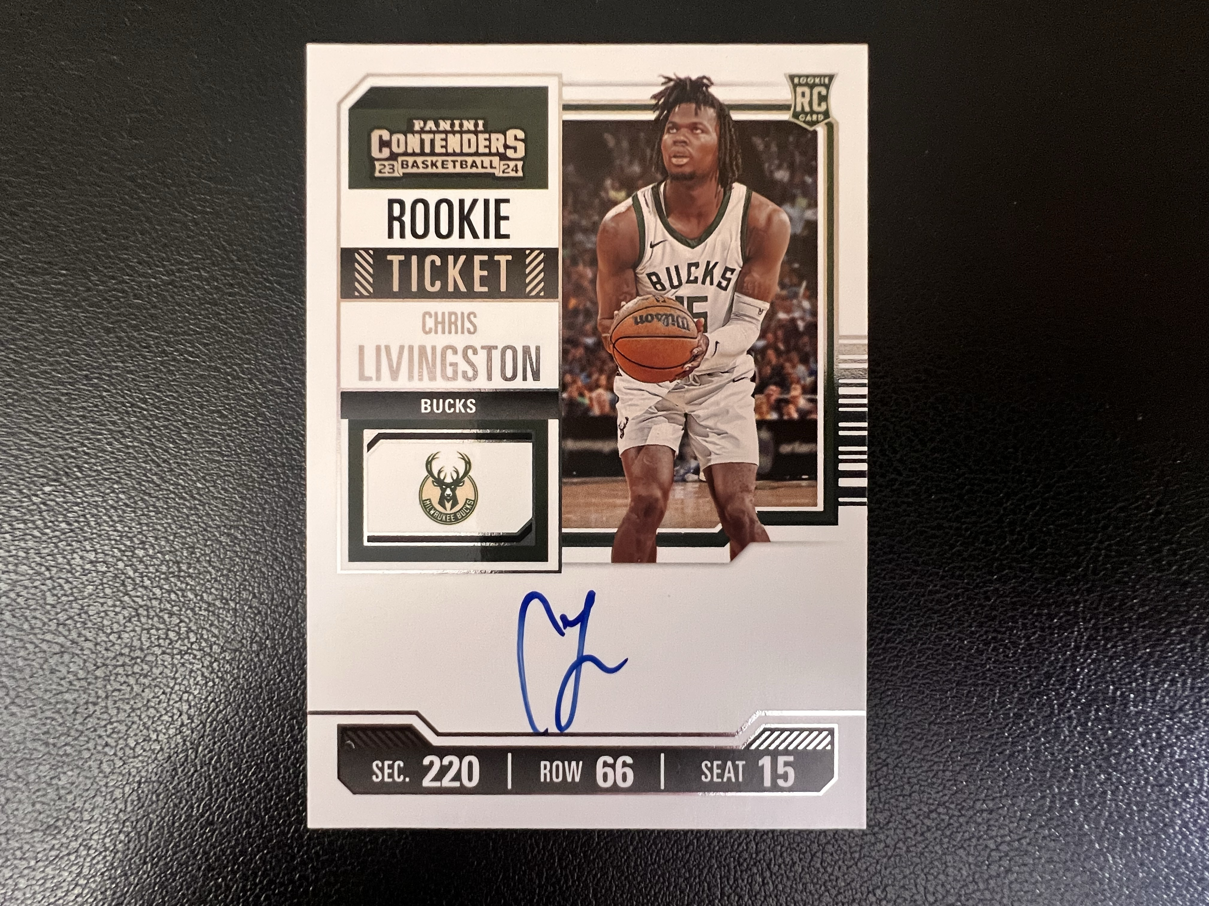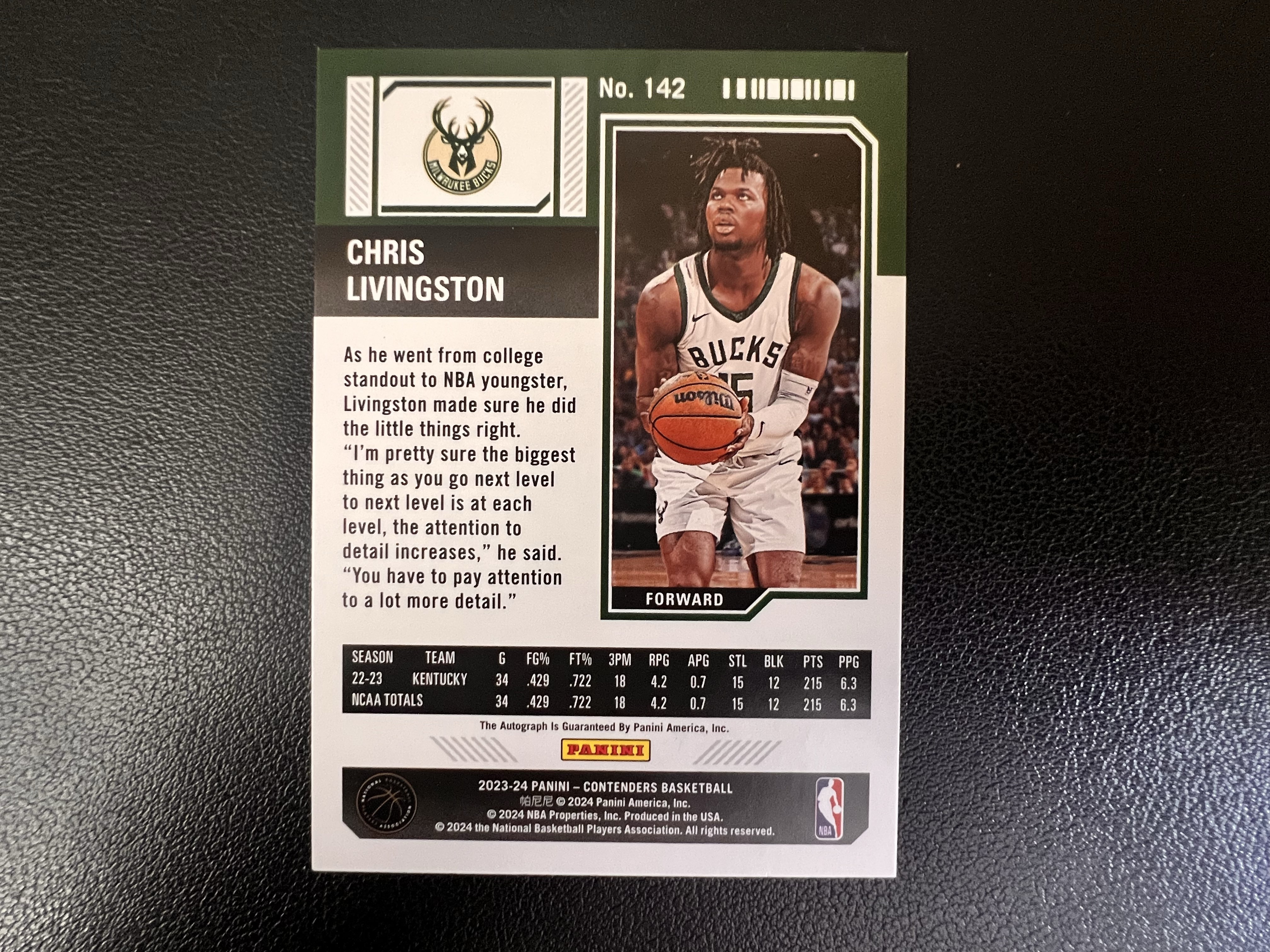 2023-24 球票系列 CHRIS LIVINGSTON 克里斯 利文斯顿 新秀RC 竖版 卡签 签字 新秀签 密尔沃基雄鹿队 潜力新星 【亮