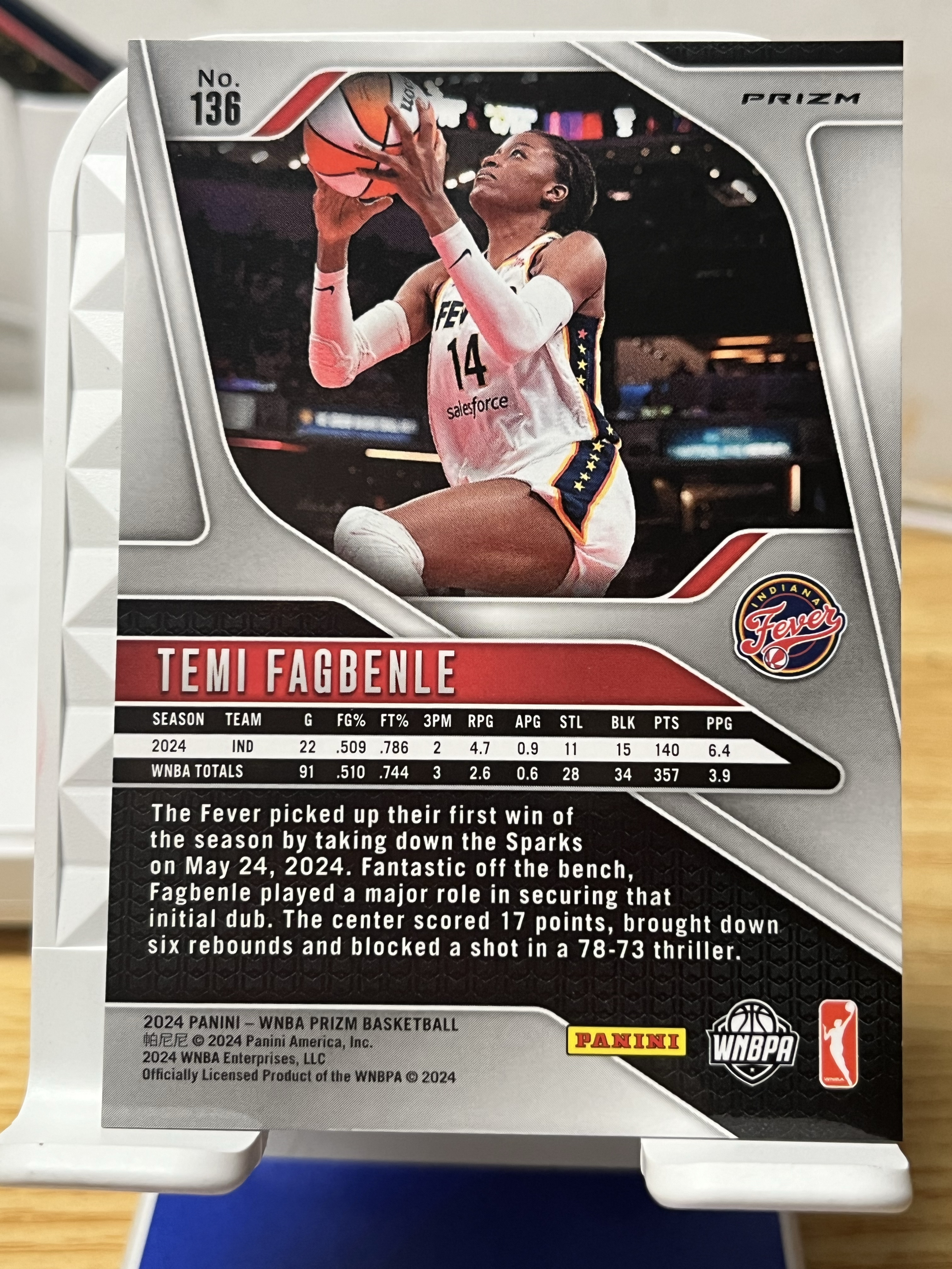 A5 2024 Panini Prizm wnba temi fagbenle WNBA 特米 芳本利  中锋 狂热队   正base 蓝镭射折 卡品如图 凑套必备