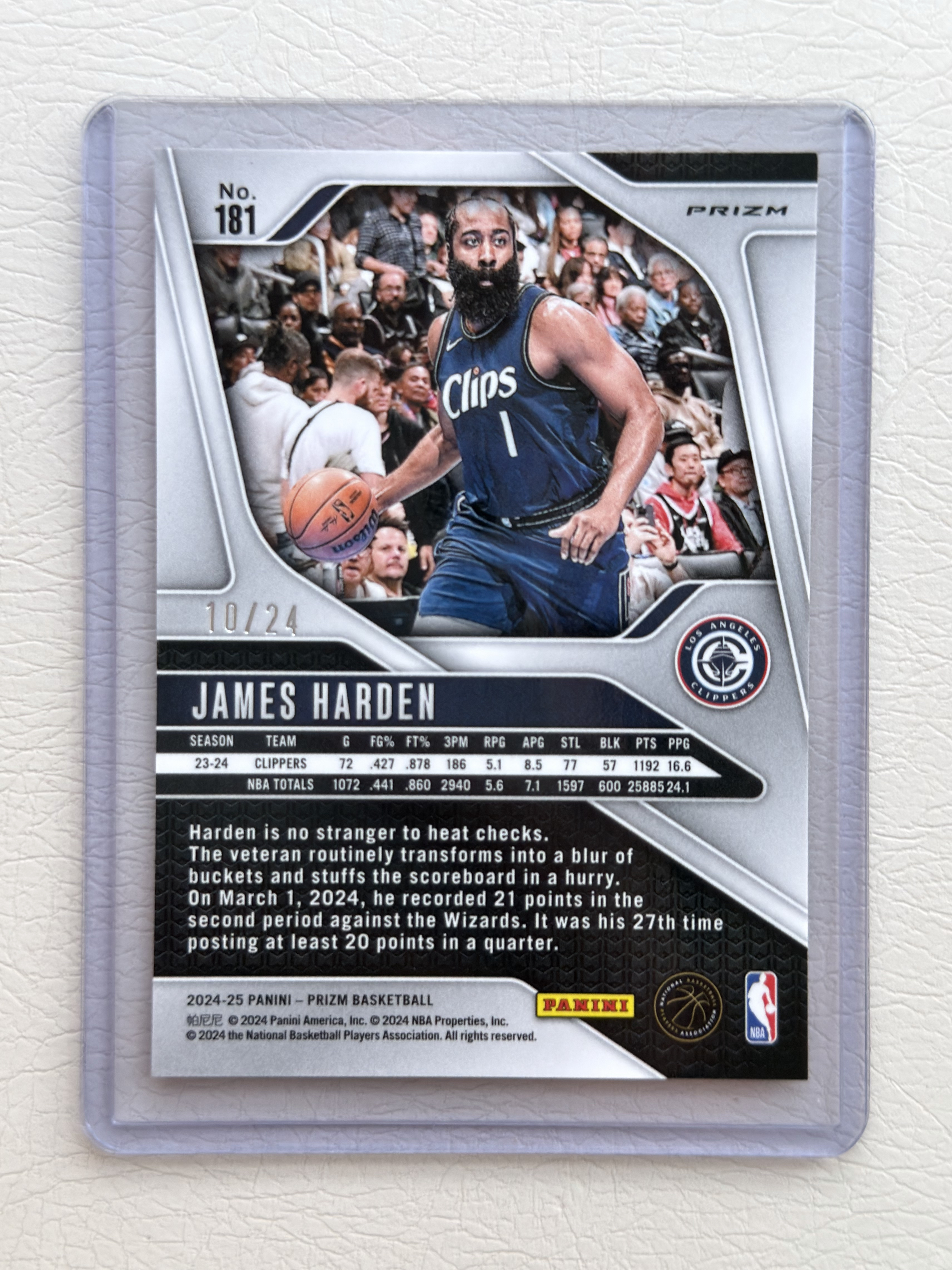 2024-25 Panini Prizm James Harden 詹姆斯 哈登 金碎闪折 金闪折 金折 24编 19/24 无签字 低编 四角尖尖 限量稀有 收藏必备 专收必备 大比例 库里 杜兰特