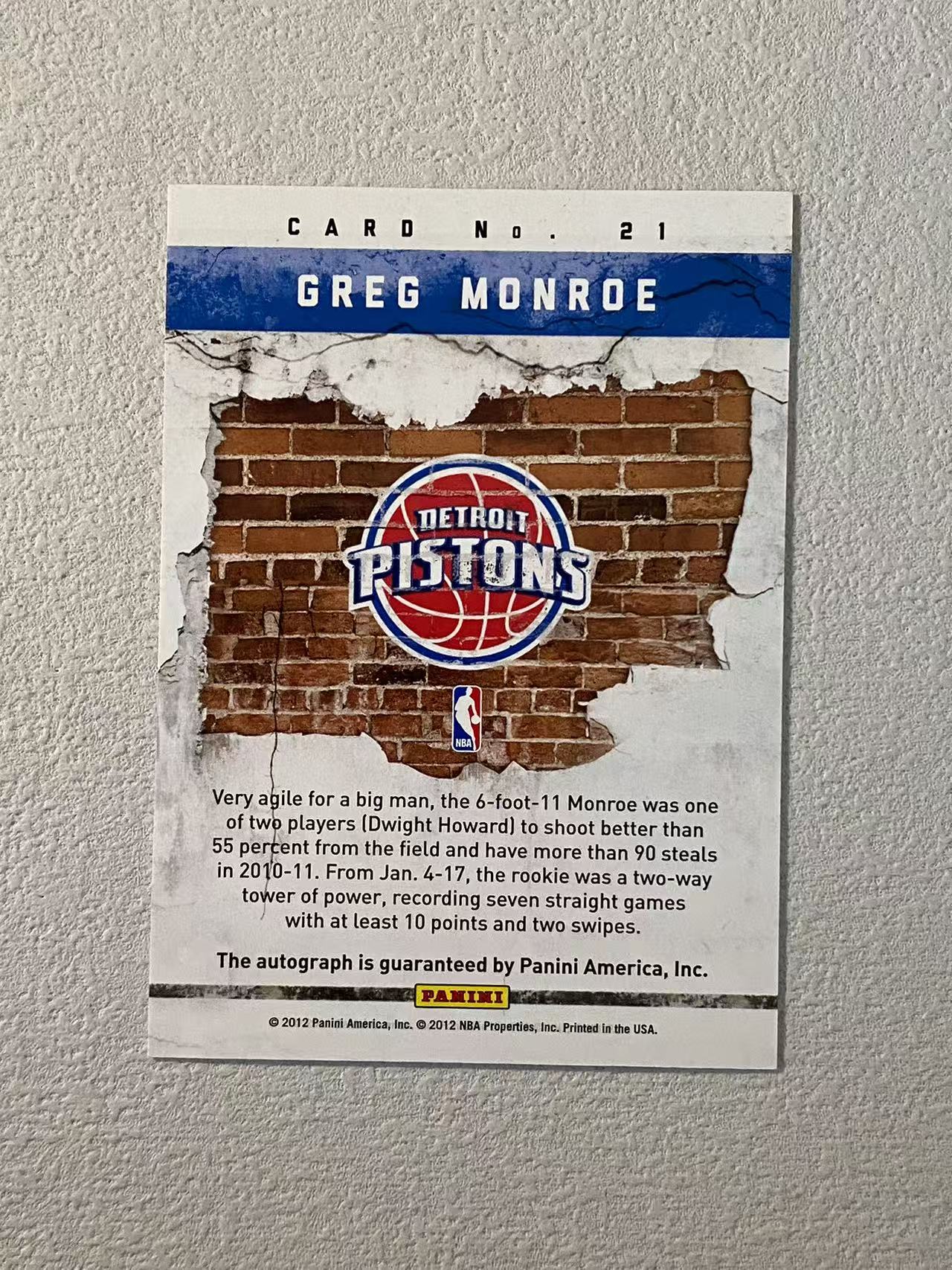 2012 Panini Past and Present Greg Monroe past 活塞 格雷格 门罗 签字 经典老卡 收藏必备