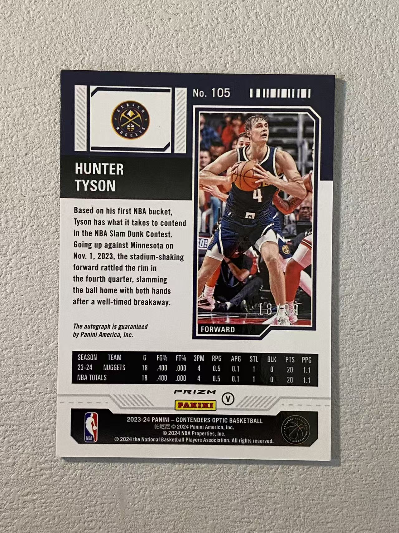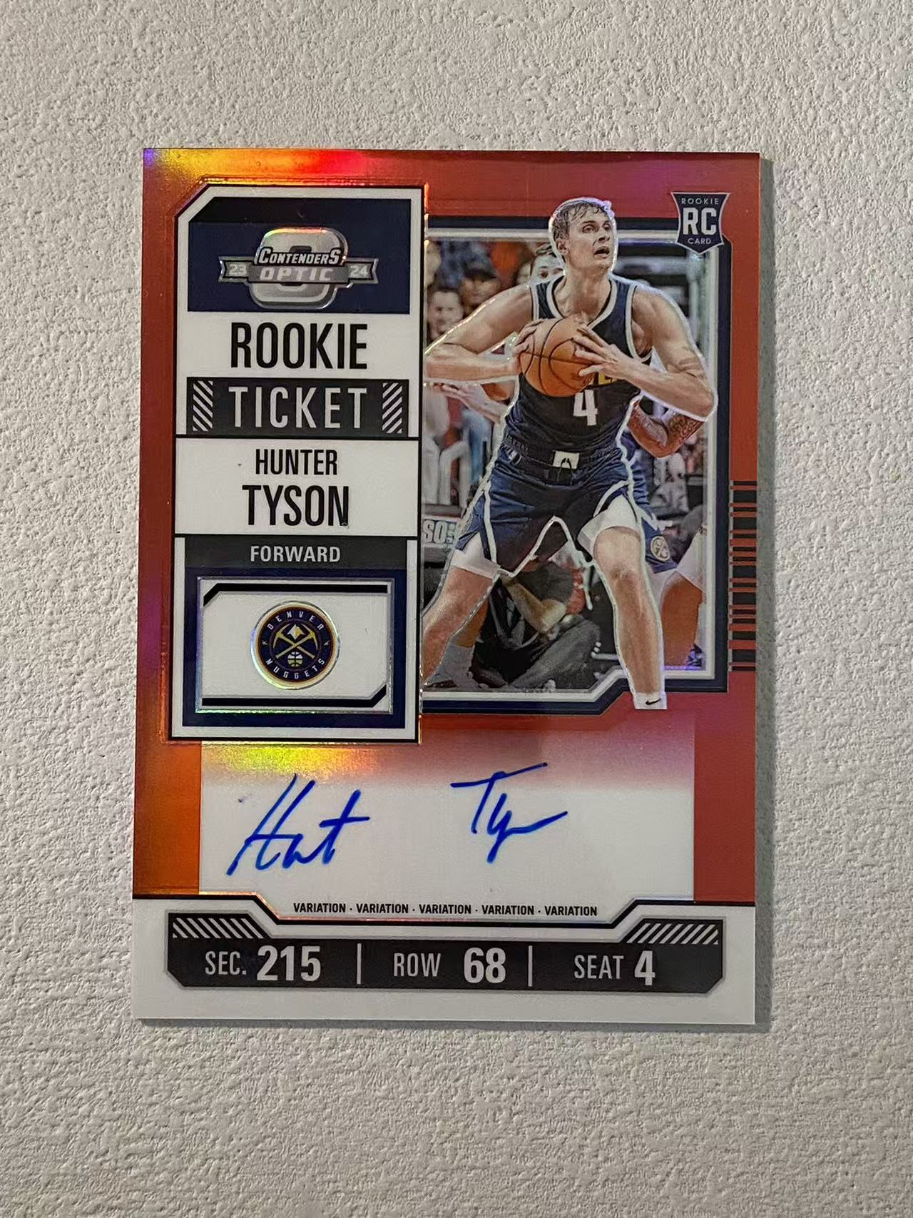 2023-24 Panini Contenders Optic Hunter Tyson RC 球票op 掘金 新秀rc 亨特 泰森 /99编 签字 卡签 折射 收藏必备