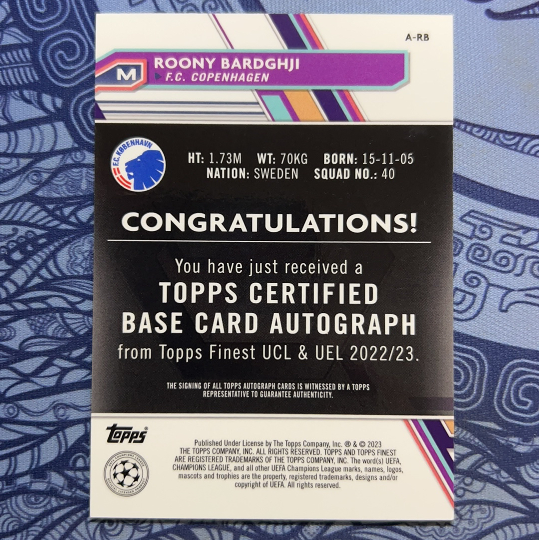 2023 Topps Finest Roony Bardghji RC 欧冠 Chrome 哥本哈根 巴塞罗那 新秀 巴尔德吉 银折 签字 完美墨迹 亚马尔 佩德里 拉菲尼亚队友 卡品如图
