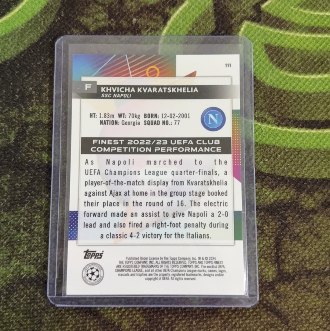 【小鸟代拍】2024 topps finest 欧冠 khvicha kvaratskhelia 那不勒斯 克瓦拉茨赫利亚 150编 卡品完美