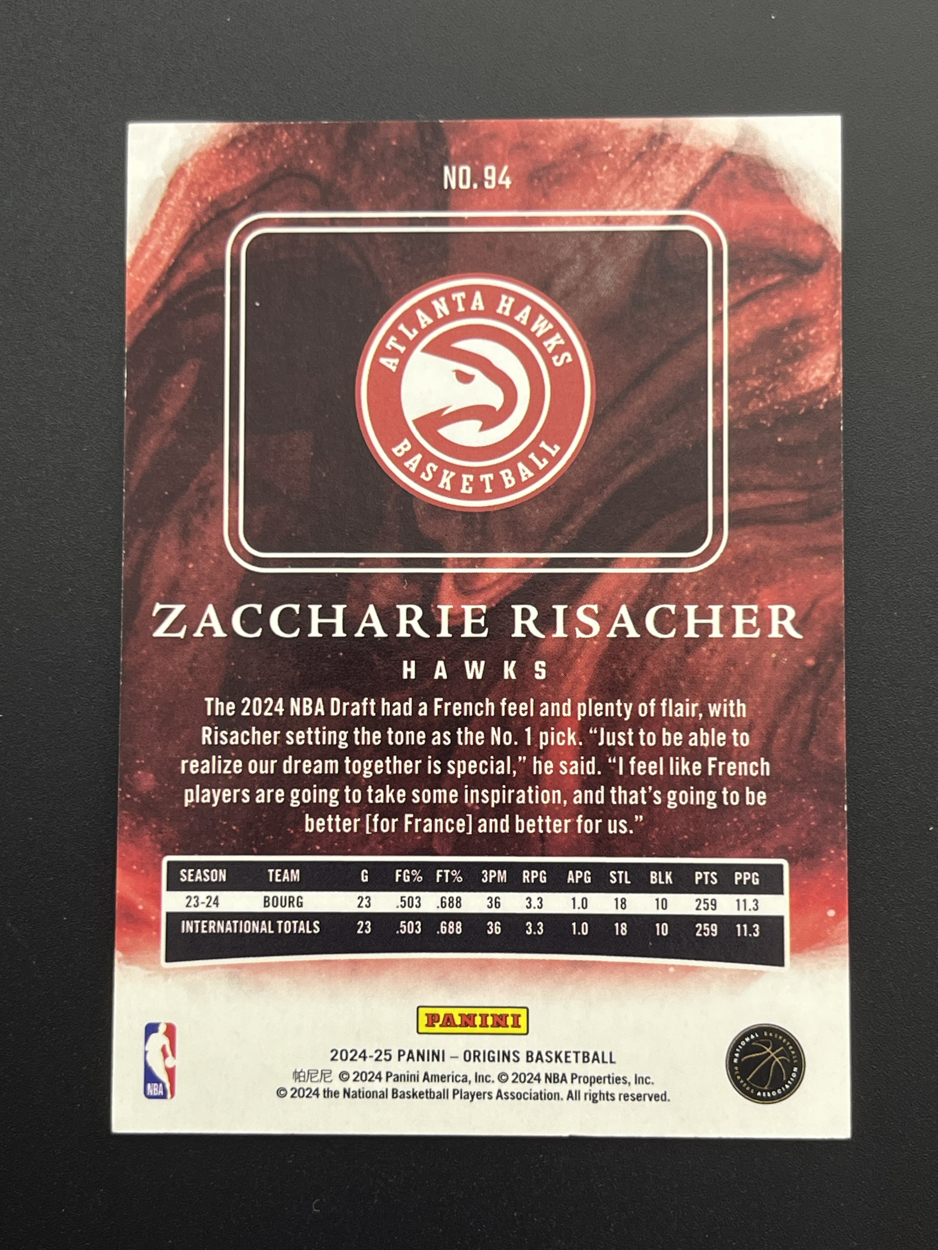 2024-25 Panini 帕尼尼 Origins 起源 扎卡里 里萨谢 Zaccharie Risacher 新秀 RC 红平行 限量  299编 状元 未来可期 凑套专收必备 卡品如图
