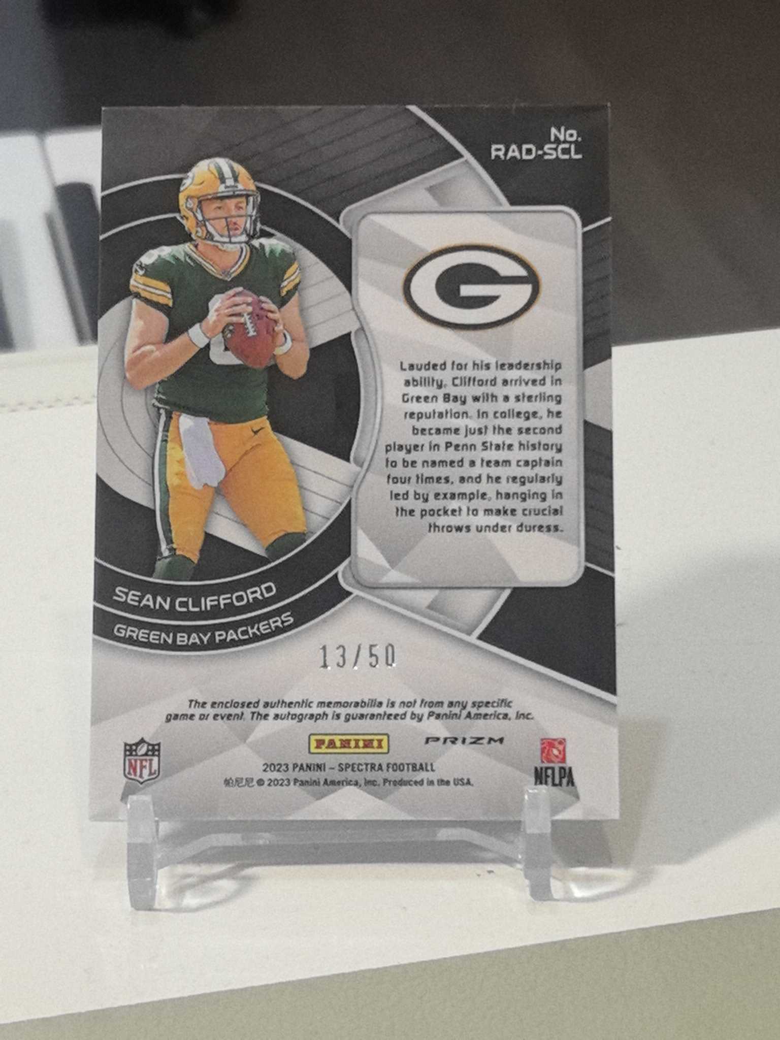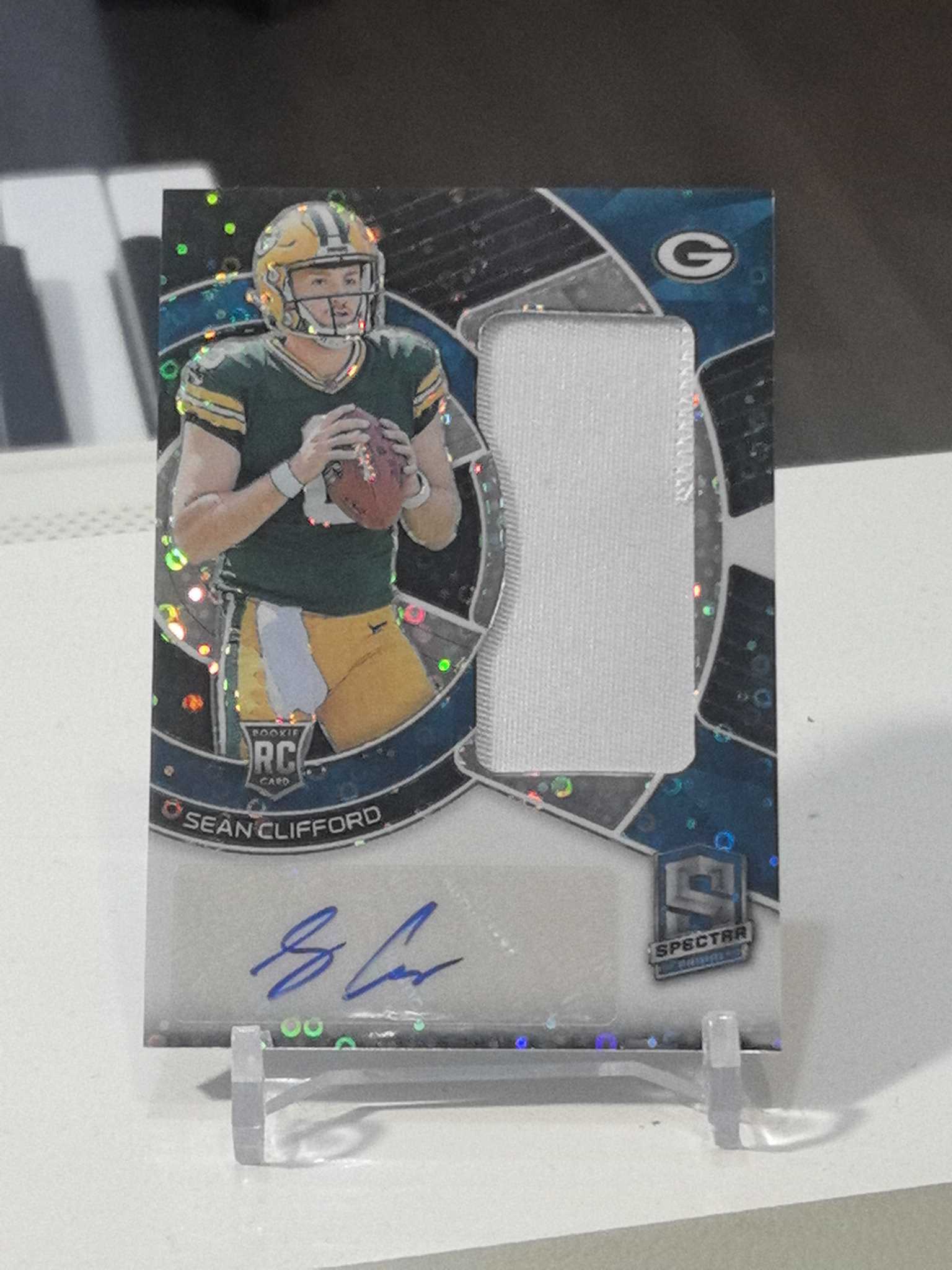 2023 Panini Spectra Sean Clifford RC 【KS拍卖】绿湾包装工 新秀四分卫克利福德/50编 蓝泡泡折射新秀球衣签字,非常漂亮,升值潜力巨大