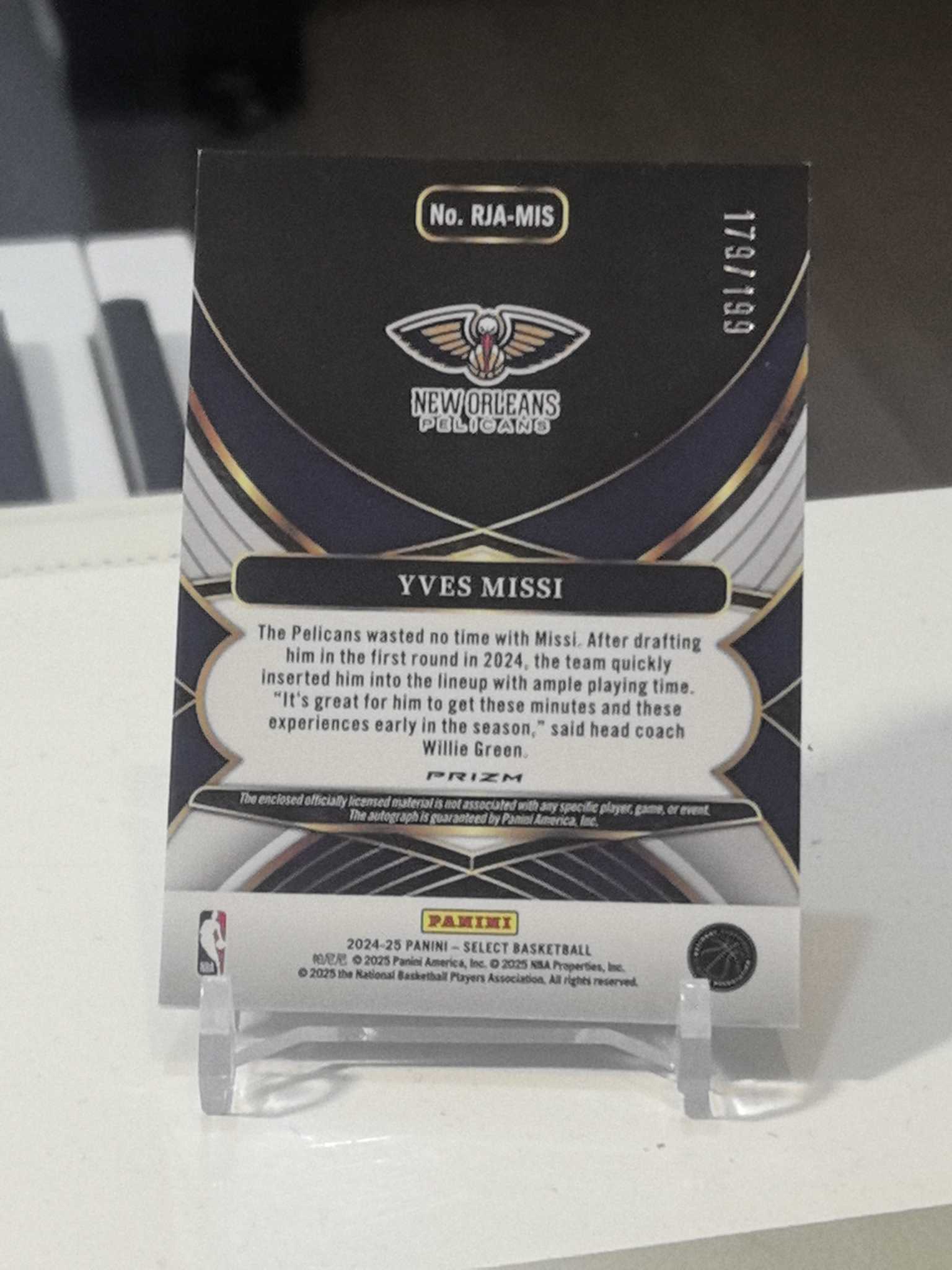 2024-25 Panini Select Yves Missi RC 【KS拍卖】鹈鹕潜力新秀 米西/199编银折射新秀球衣签字,升值潜力大