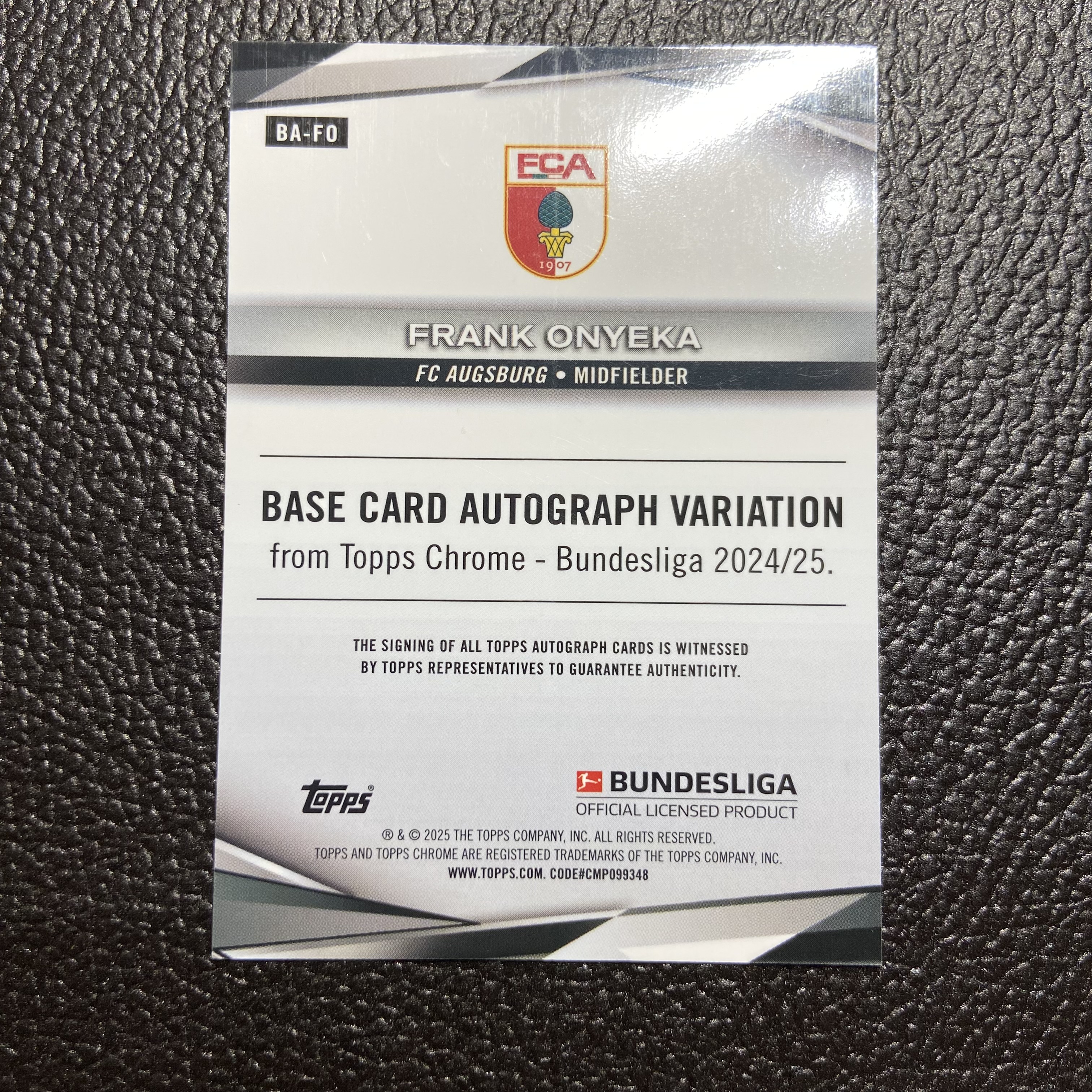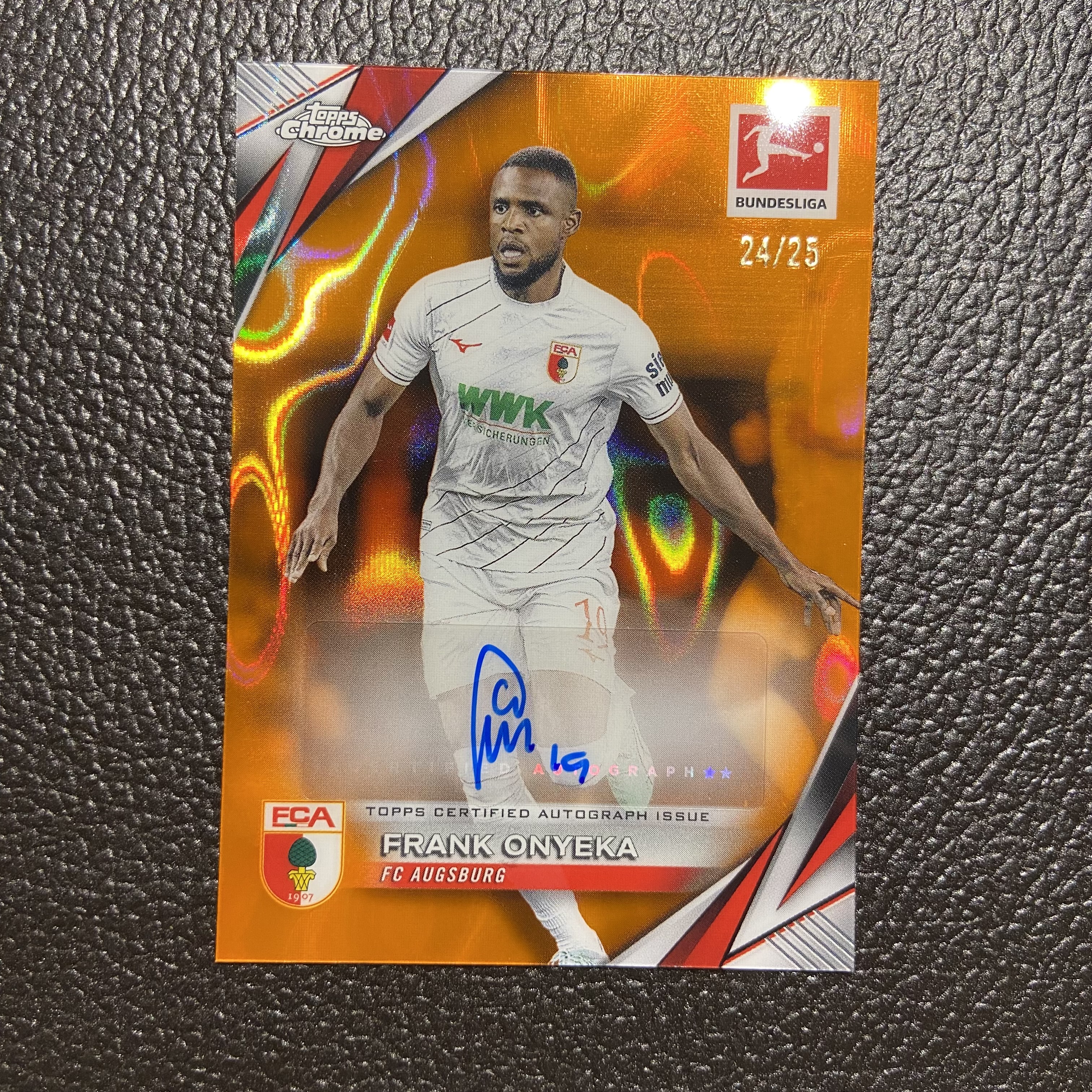 【乐飞拍卖】LF-M03 2024-25 TOPPS CHROME FRANK ONYEKA 弗兰克 奥涅卡 签字 25编 熔岩金折签 奥格斯堡 布伦特福德 米迪兰特 尼日利亚 防守型中场 德甲