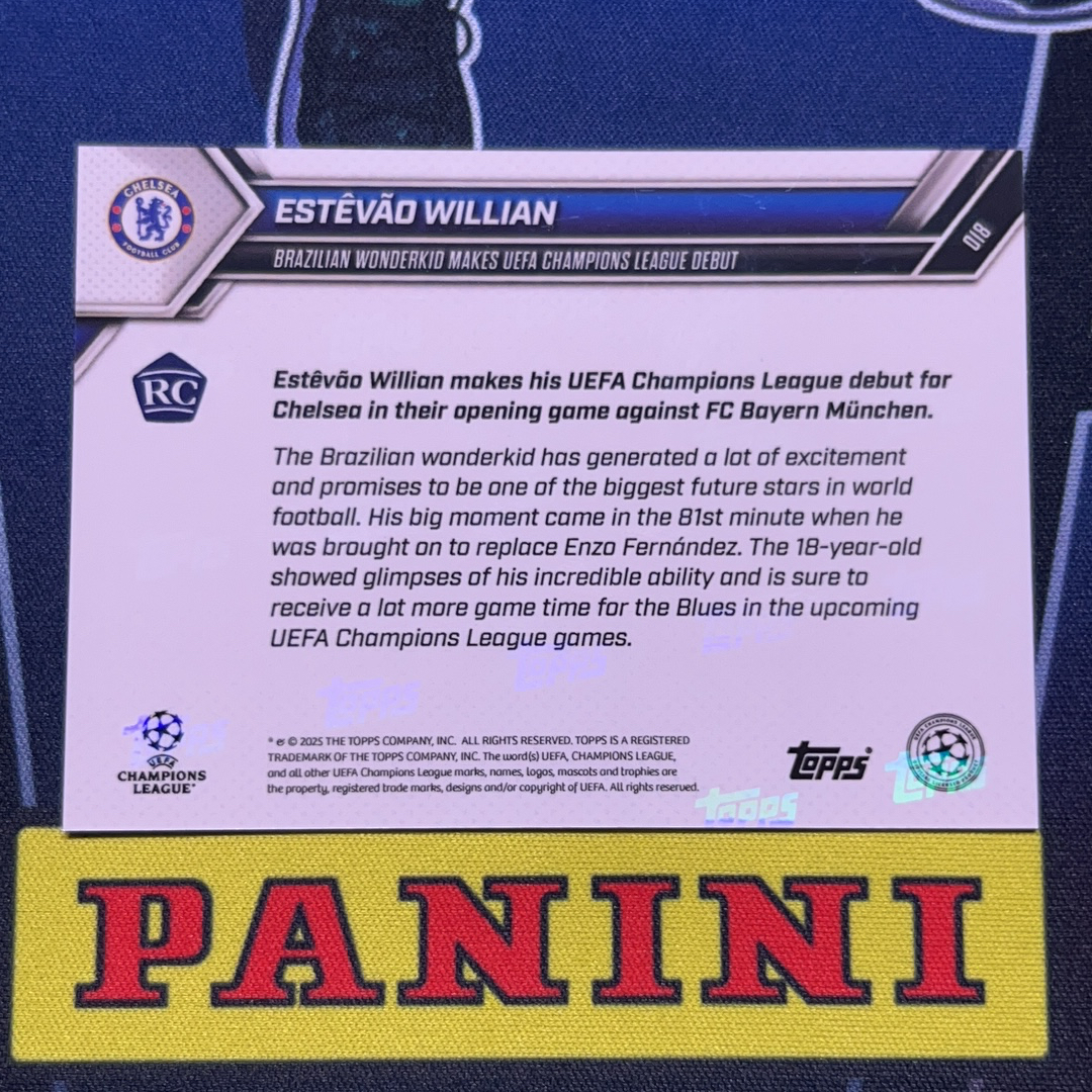 2025 Topps Now Estêvão Estevao RC 切尔西巴西天才埃斯特旺在英超联赛中首球,成为史上第三年轻的巴西球员。佩德罗 恩佐 德拉普 内托 凯塞多 帕尔默 乔治 吉滕斯