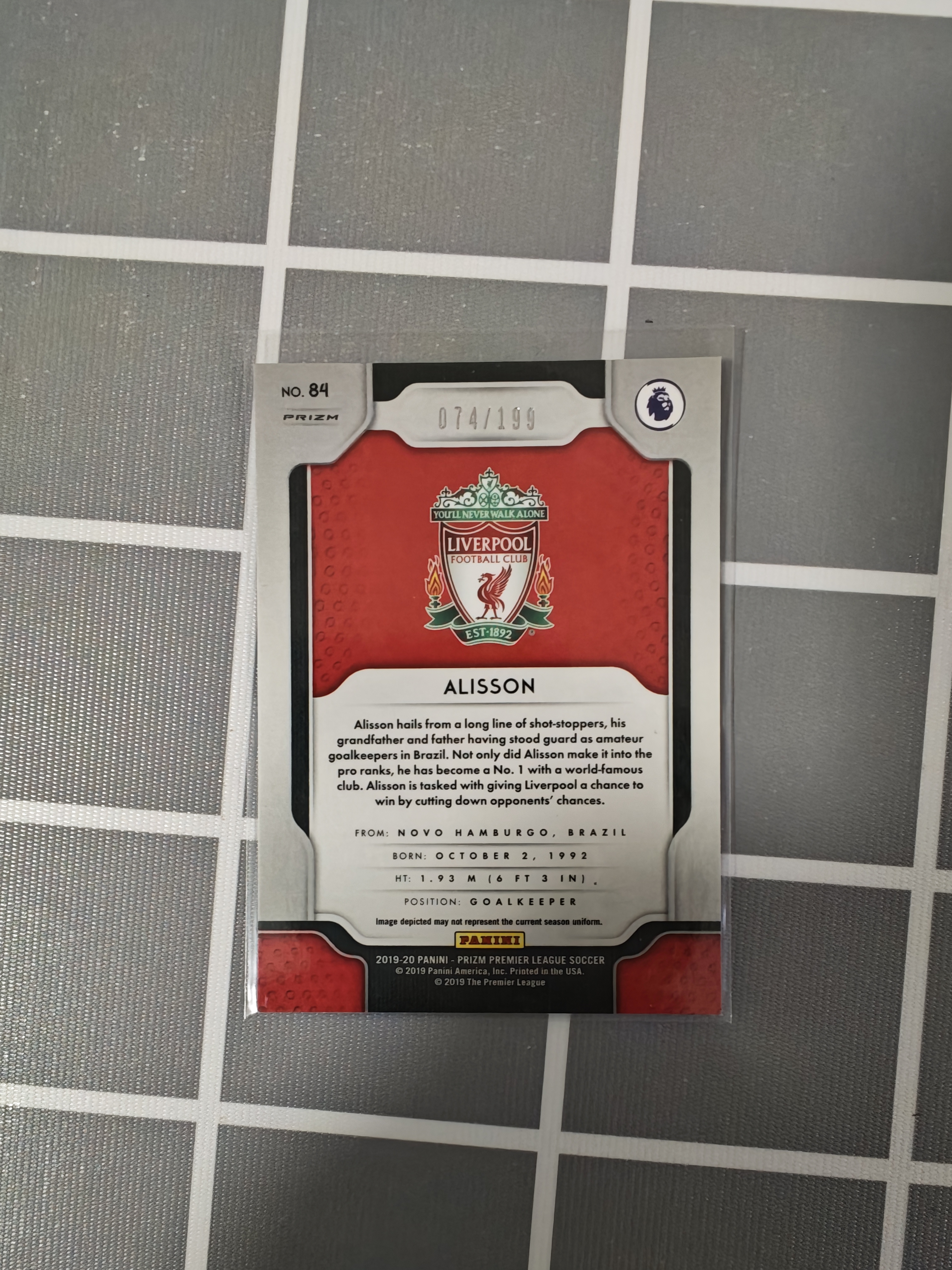 2019-20 Panini Prizm Alisson Becker 英超PZ 利物浦 冠军赛季 阿利松 巴西 蓝折 199编 凑套必备 极具收藏价值