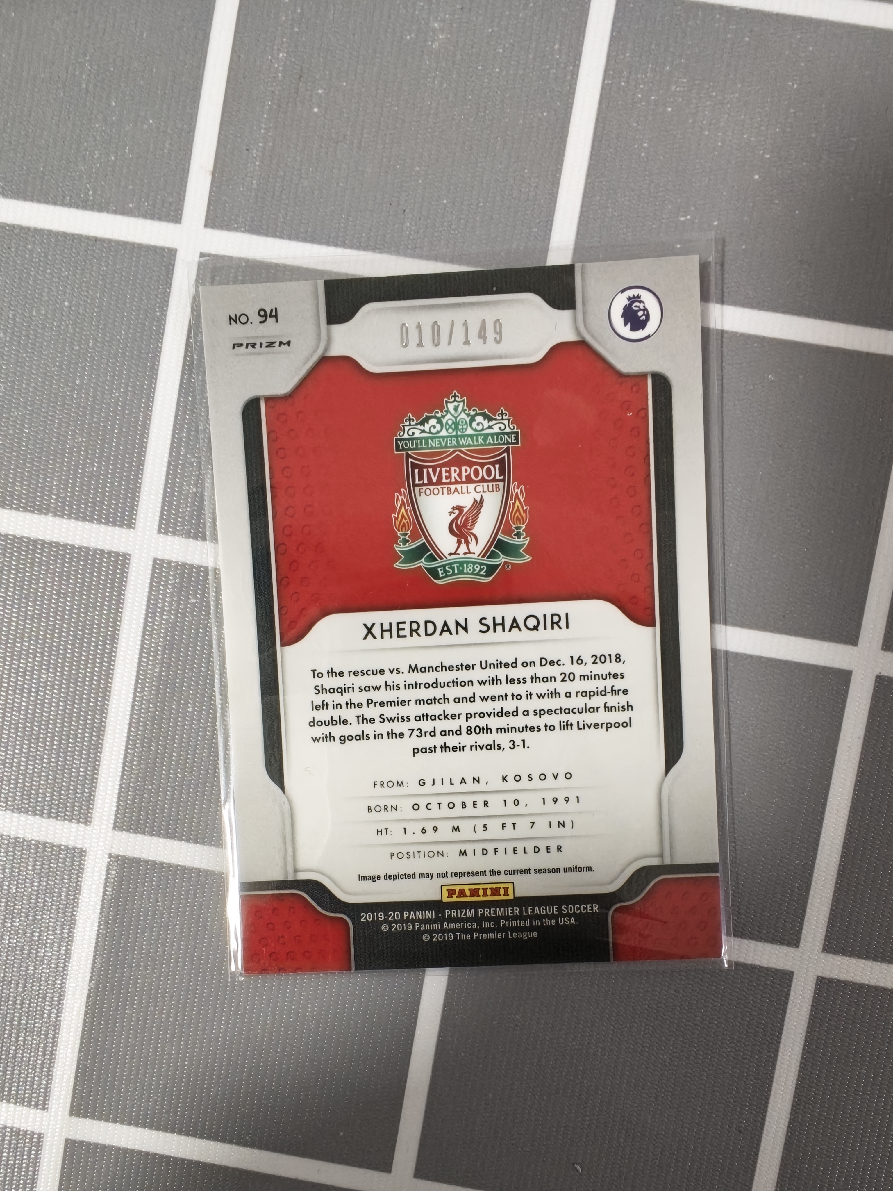 2019-20 Panini Prizm shaqiri沙奇里 英超PZ 利物浦 冠军赛季 沙奇里 瑞士 红折 149编 Colormatch 红配红 凑套必备 极具收藏价值