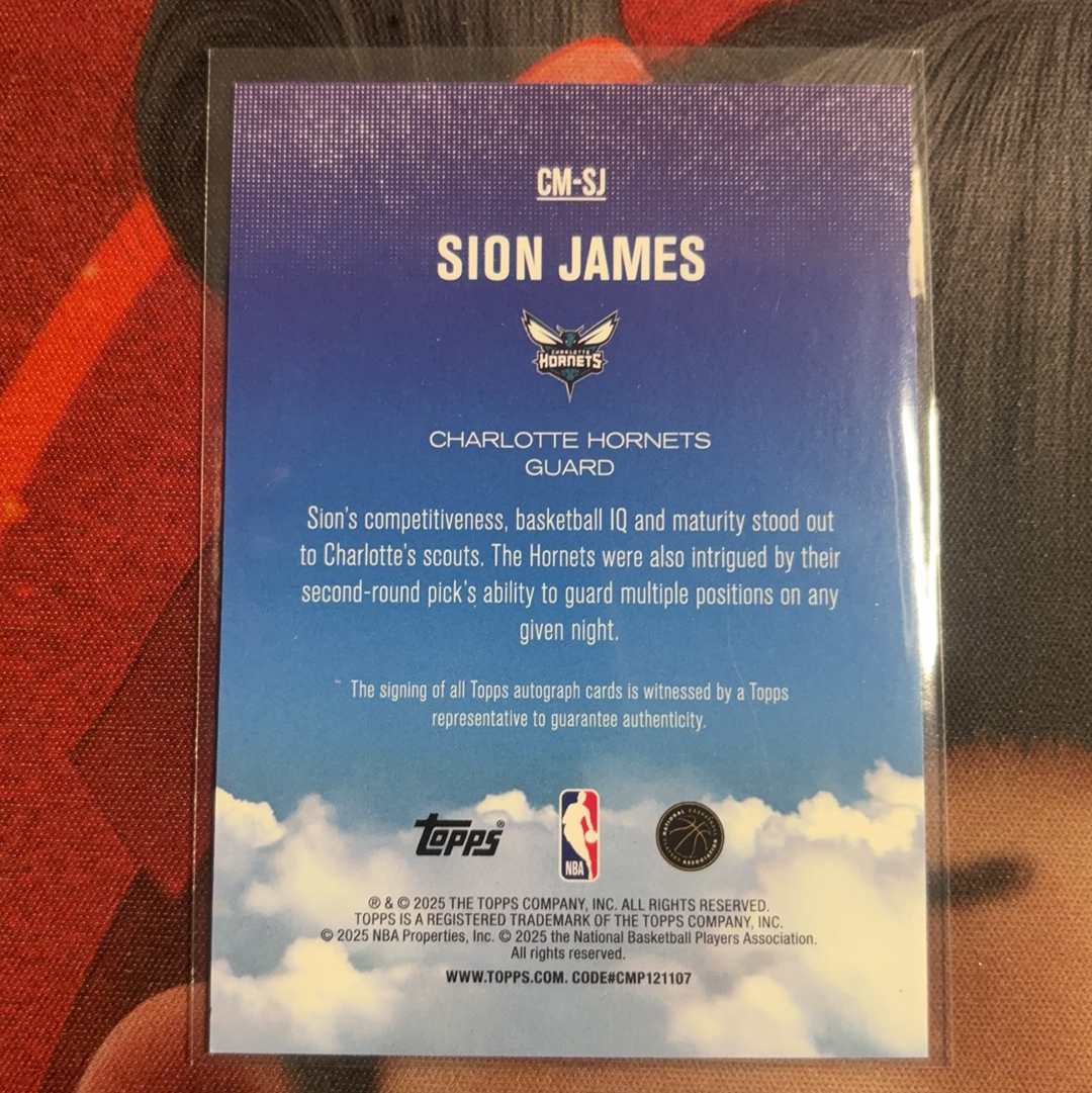 2025 Topps flagship Sion James RC 黄蜂队 新秀 希恩·詹姆斯 签字 贴签 收藏 卡品如图