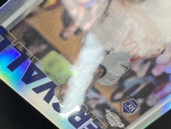 【关于卡品】:①出价即认同品相详情及拍卖规则,概不退换;②签字墨迹及卡片品相均如图,请看清楚细节图再拍,图片很清楚,需要细节图请提前咨询站内信或VX;③折射系列经常会有一道横线印刷线是出品印刷问题,不属于卡品残次范畴。国宝、IMM、NOIR等厚卡有轻微白边白角属于正常现象!镜面系列等卡面轻印划痕、印刷自带痕迹或覆膜不平起泡等卡片自身问题均为通行品。老卡有白边白角属于正常卡品。评级卡砖上的划痕和破损以及评级砖内的卡有卡品问题一律不属于品相问题。PZ、OP等各种折射系列表面的轻微划痕为正常卡品。关于以上卡品问题请确认无误再出价,介意者勿拍,要评级追求金标和10分者请直接购买评级卡。④快递过程中如出现包装破损、暴力变形、遗失等问题,请自行联系顺丰客服处理理赔,提供购买订单记录和物流记录给顺丰即可,如有高价卡有保价需求,请主动联系我们!⑤所有多卡打包lots标均不保卡品,品控和艺术家勿扰,感谢理解!【任何疑问请添加咨询VX:cglgzh01】