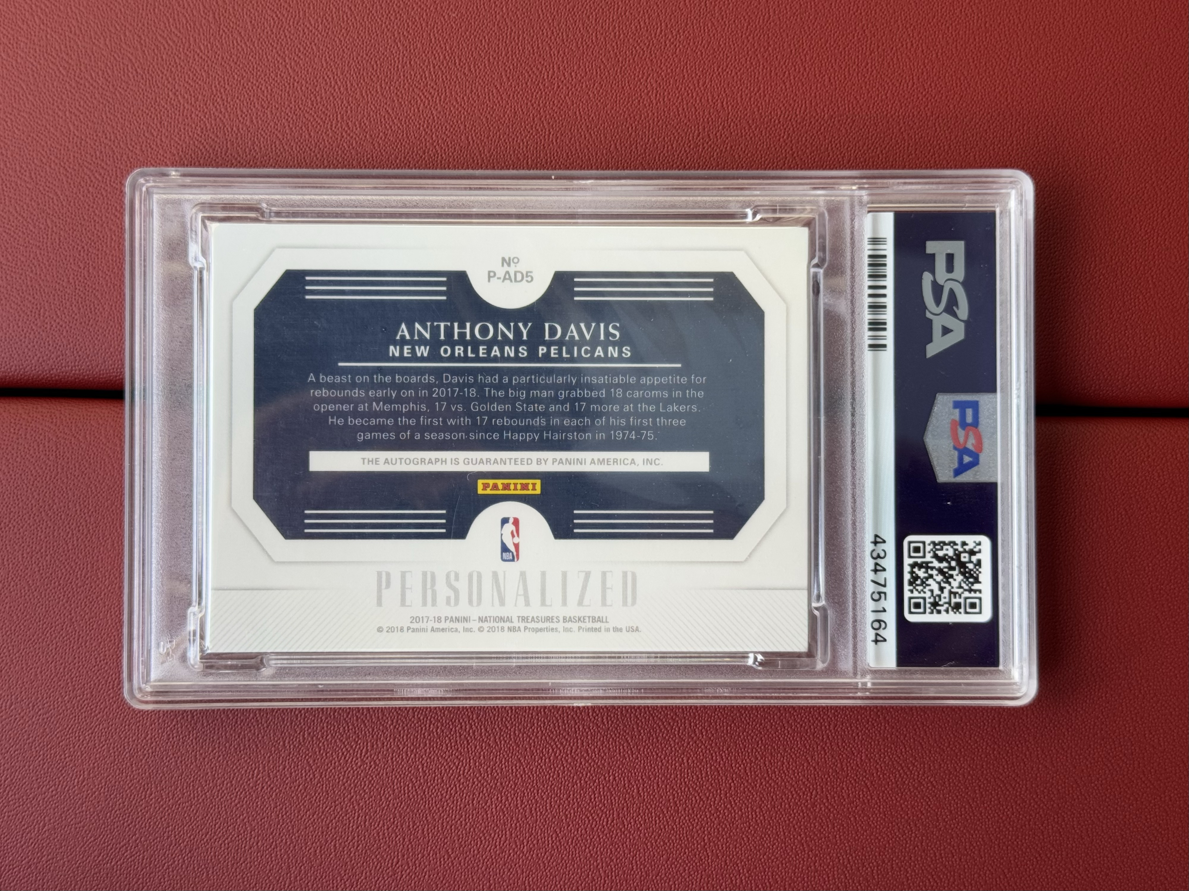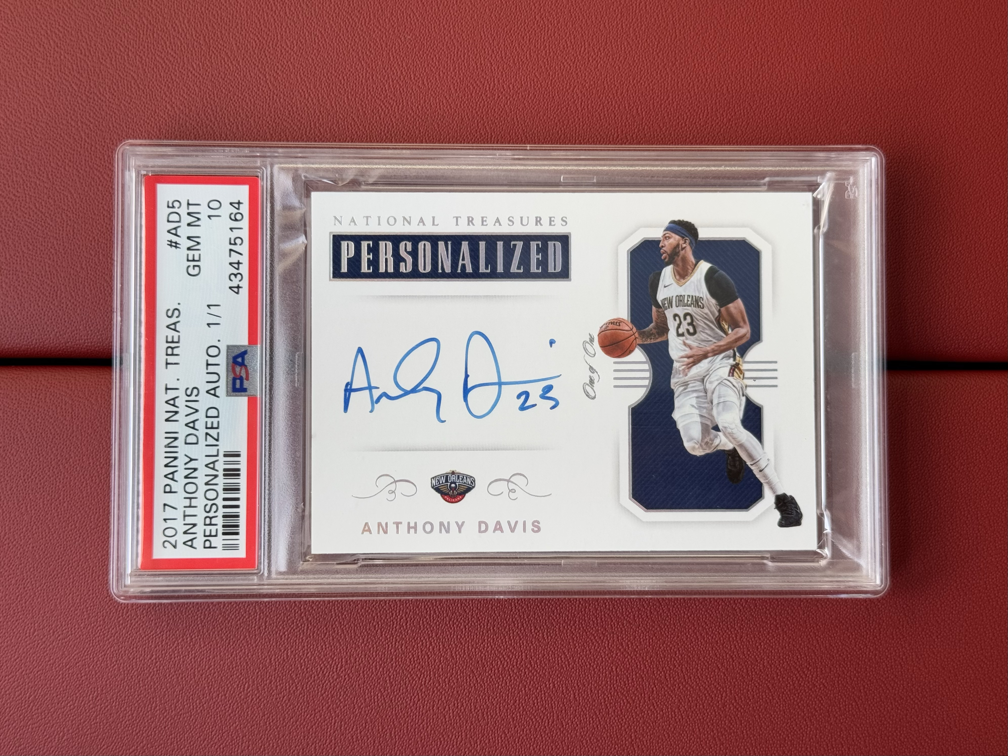 2017 Panini National Treasures Anthony Davis 【小花猪代卖】国宝 安东尼戴维斯 浓眉 铭文签 1/1 1编1 白金闪 PSA10分卡品! 单一平行仅此一张!