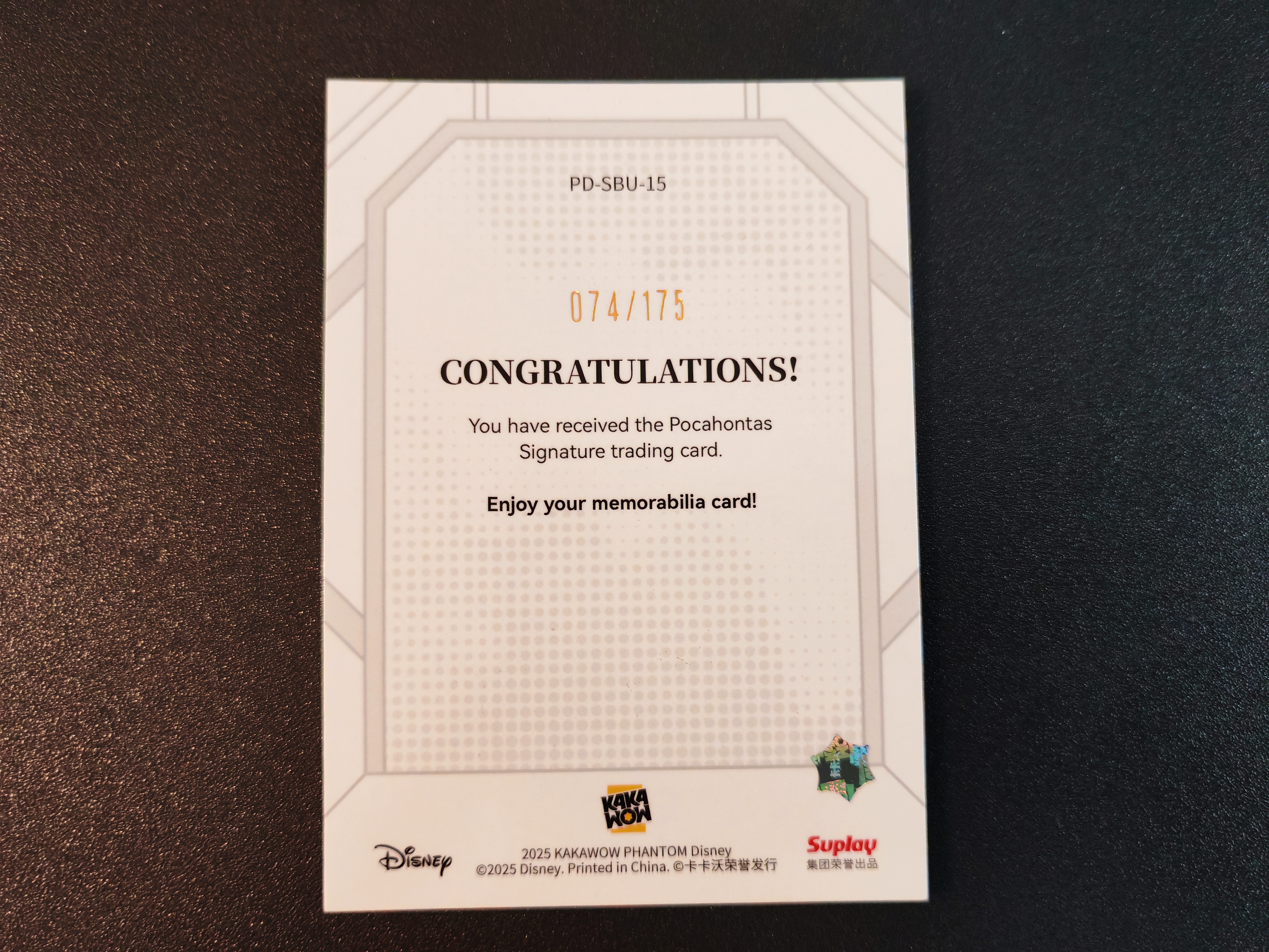 2025 KakawowDisneyPhantom卡卡沃 迪士尼系列收藏卡 宝嘉康蒂公主 蓝折 限/175编 签字 印签 卡品如图所示 默认官瑕!宝