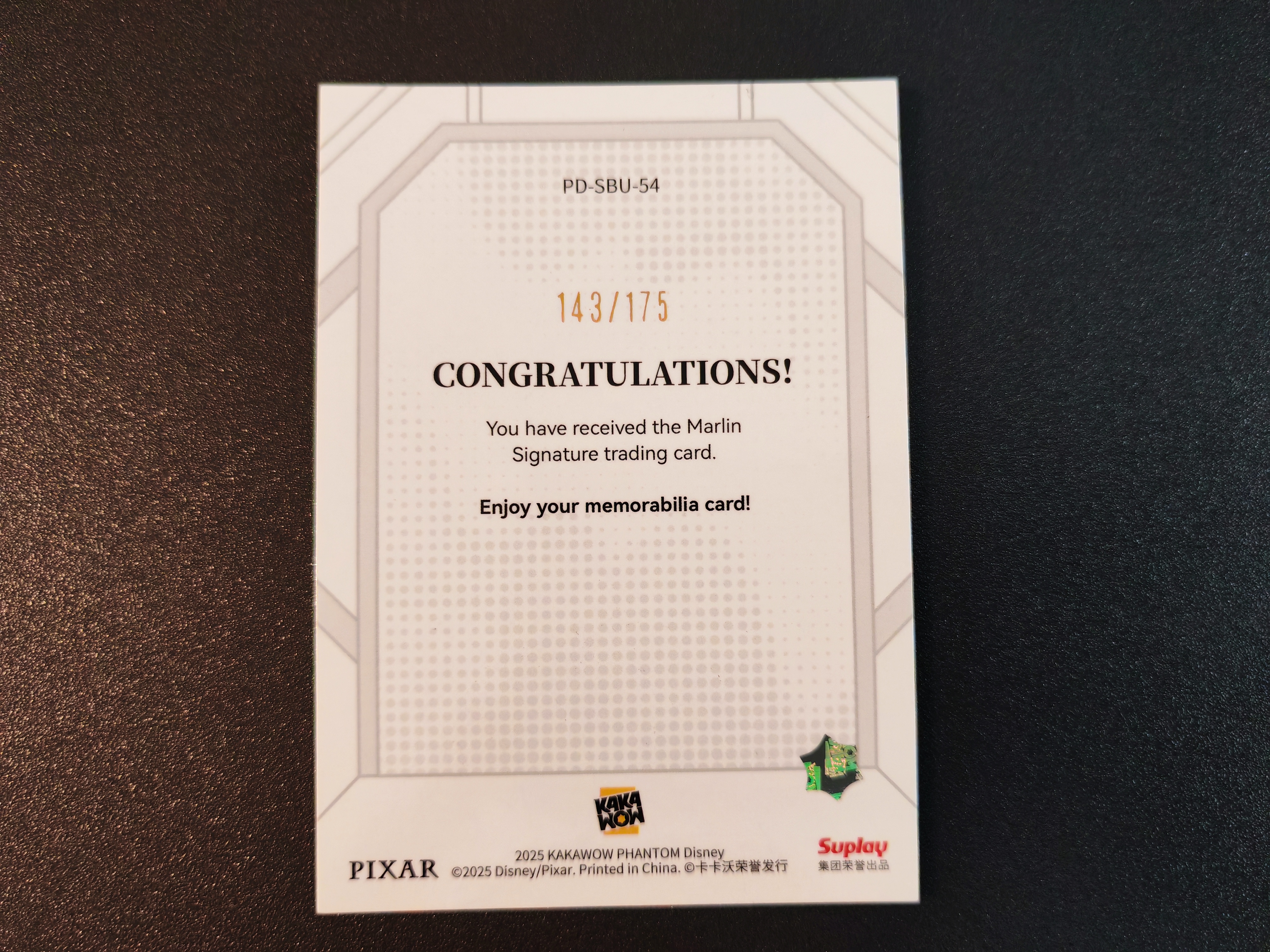 2025 KakawowDisneyPhantom卡卡沃 迪士尼系列收藏卡 马林“海底总动员” 蓝折 限/175编 签字 印签 卡品如图所示 默认官瑕!宝