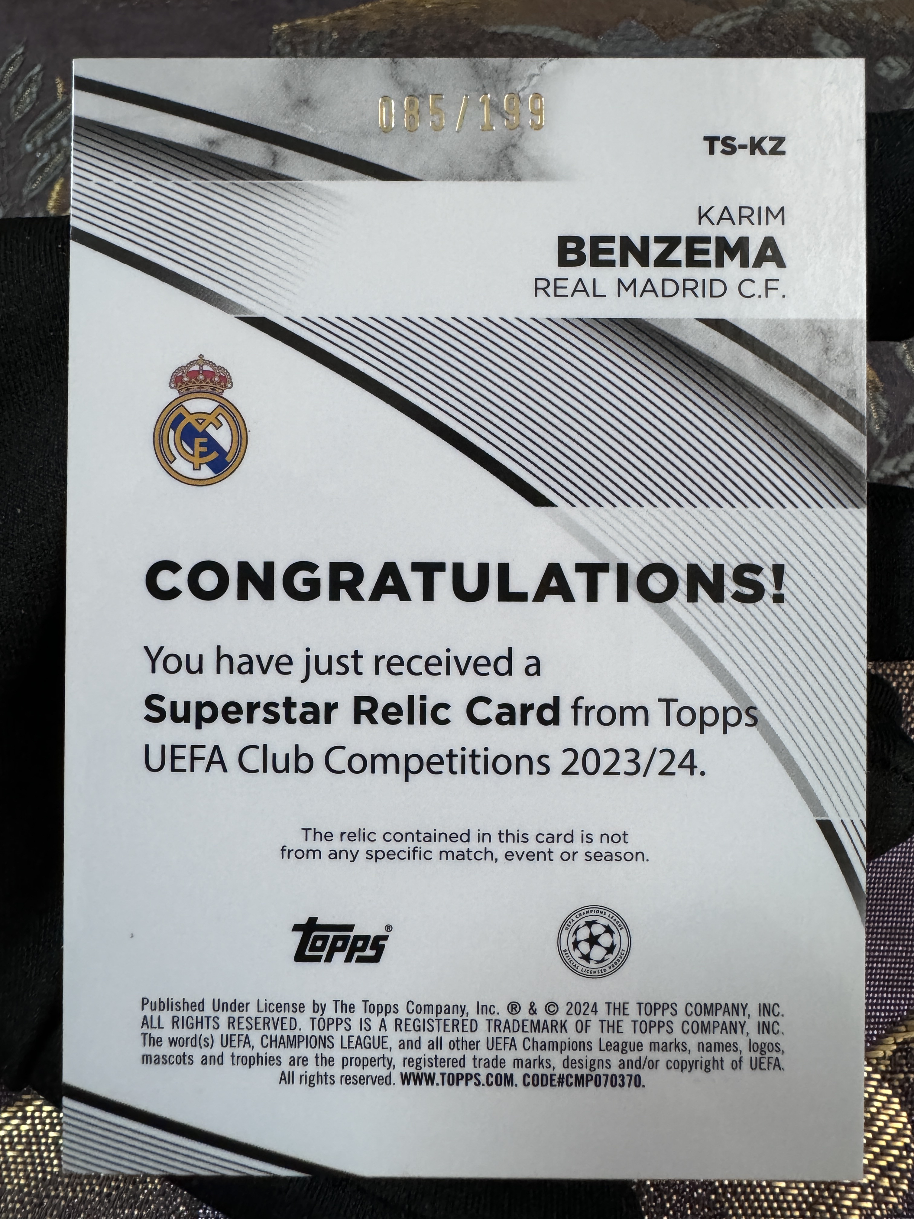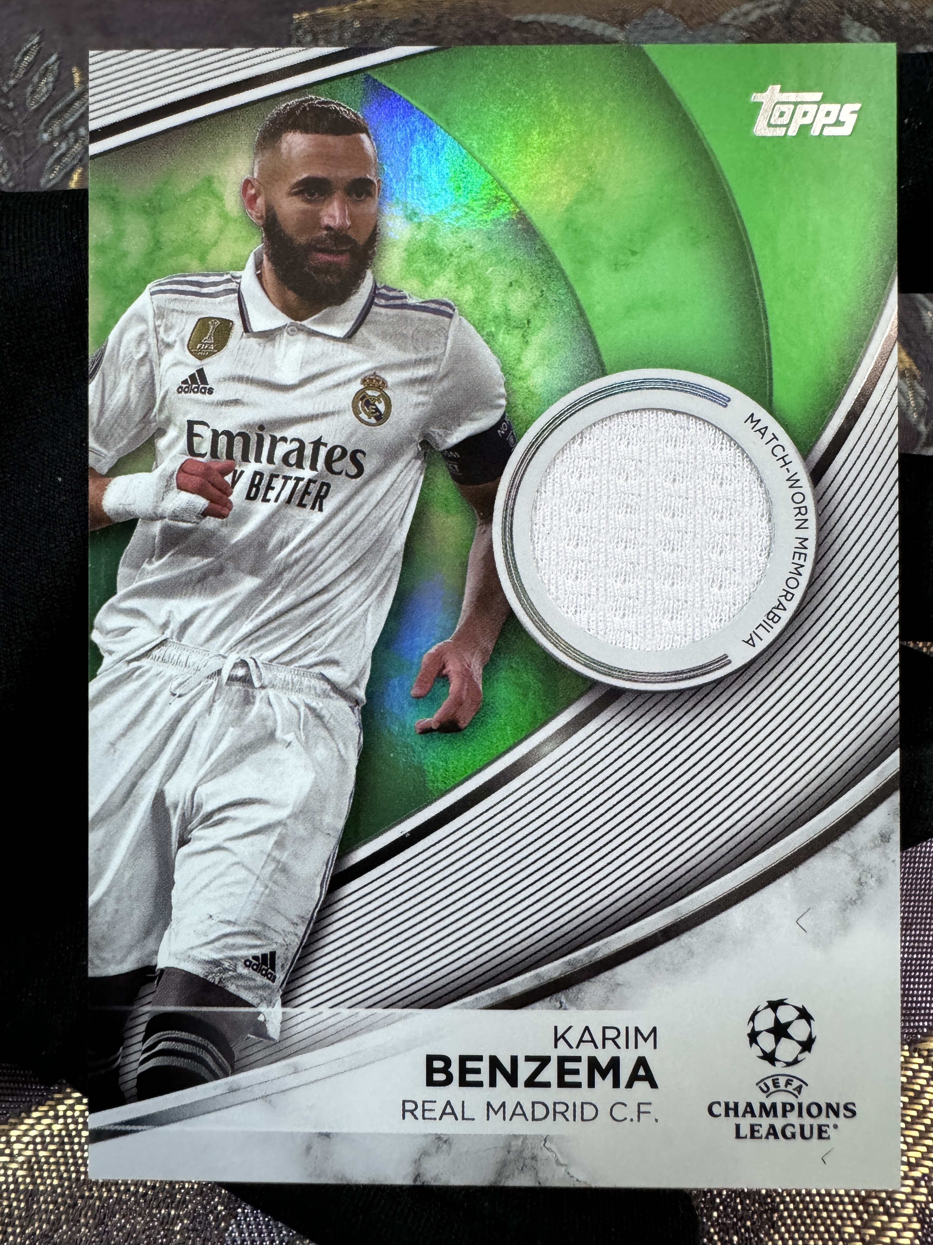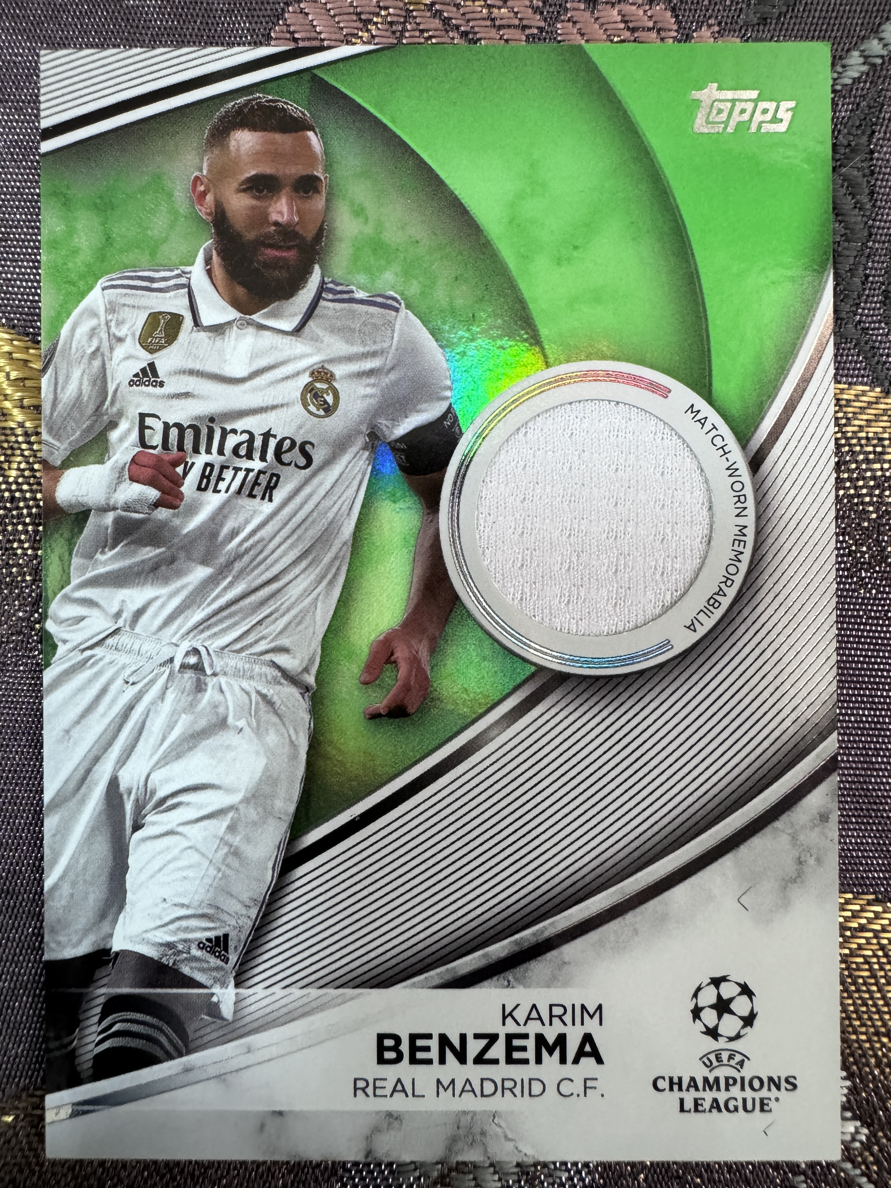 2024 Topps UCC Karim Benzema 【澈梦北霄】欧冠 UCC 皇马 皇家马德里 法国 金球先生 超级巨星 本泽马 单窗物料切割 球衣patch 绿平行 085/199编 实卡精美