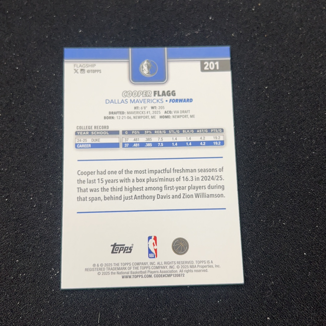 2025-26 Topps Flagship Cooper Flagg 【小V代拍】库珀 弗拉格 独行侠 新秀 base 普卡 topps 卡品如图【XU】Z