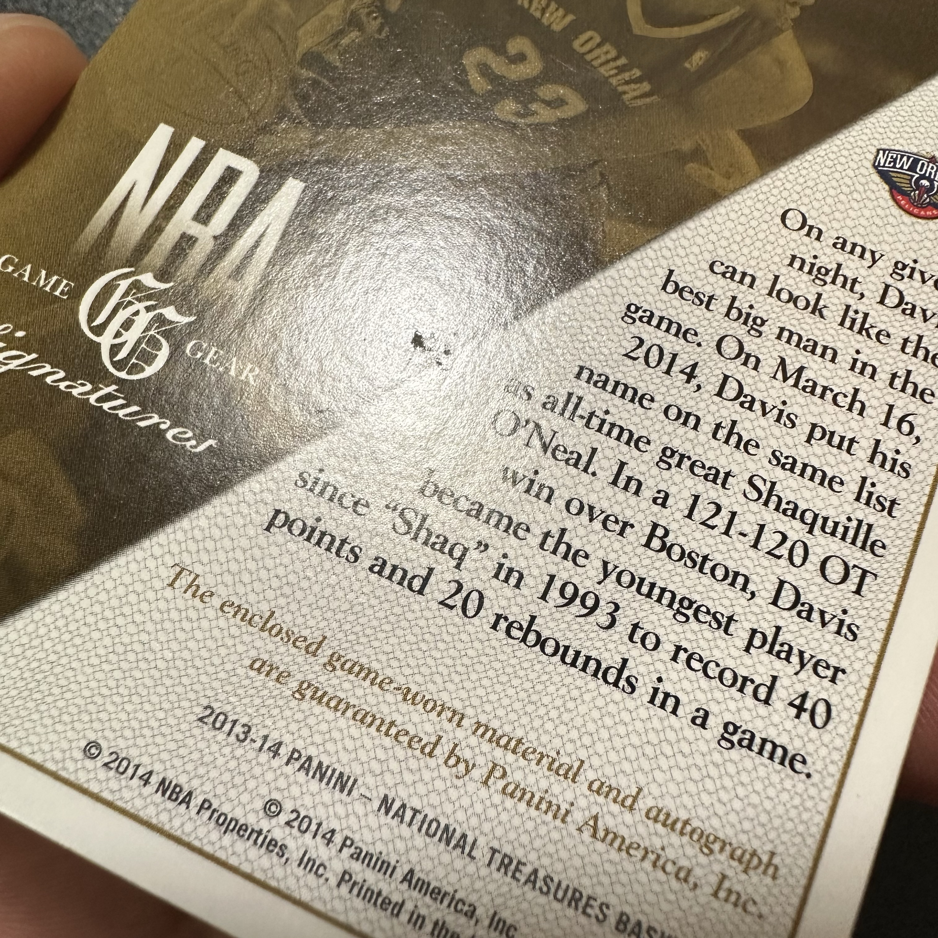 2013-14 National Treasures 国宝 鹈鹕 安东尼 戴维斯 限量 35编 球衣 JA 签字 卡签 细节如图 凑套收费 亮仔