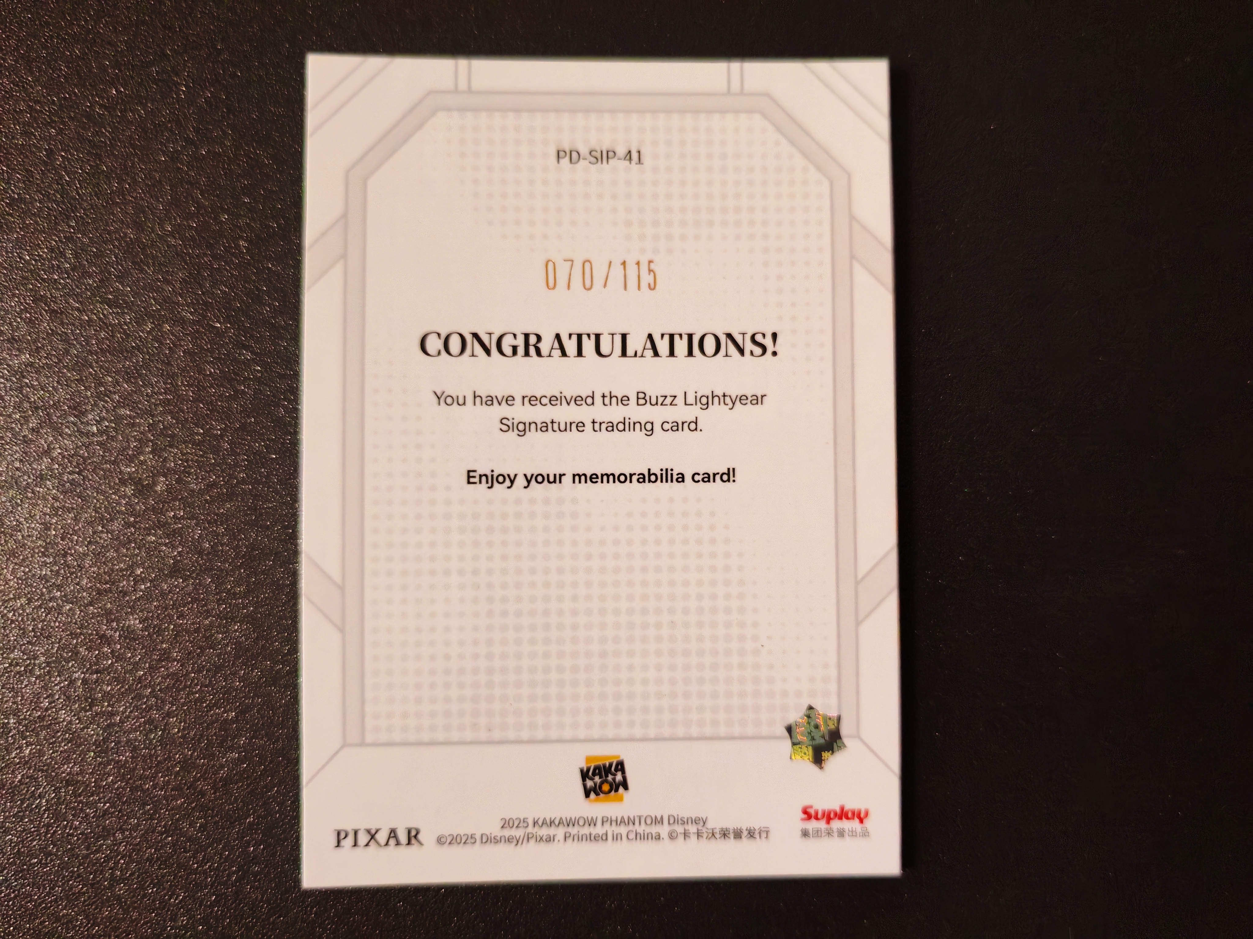 2025 KakawowDisneyPhantom卡卡沃 迪士尼系列收藏卡  紫折  巴斯光年  限/115编 签字 印签 卡品如图所示 默认官瑕!宝