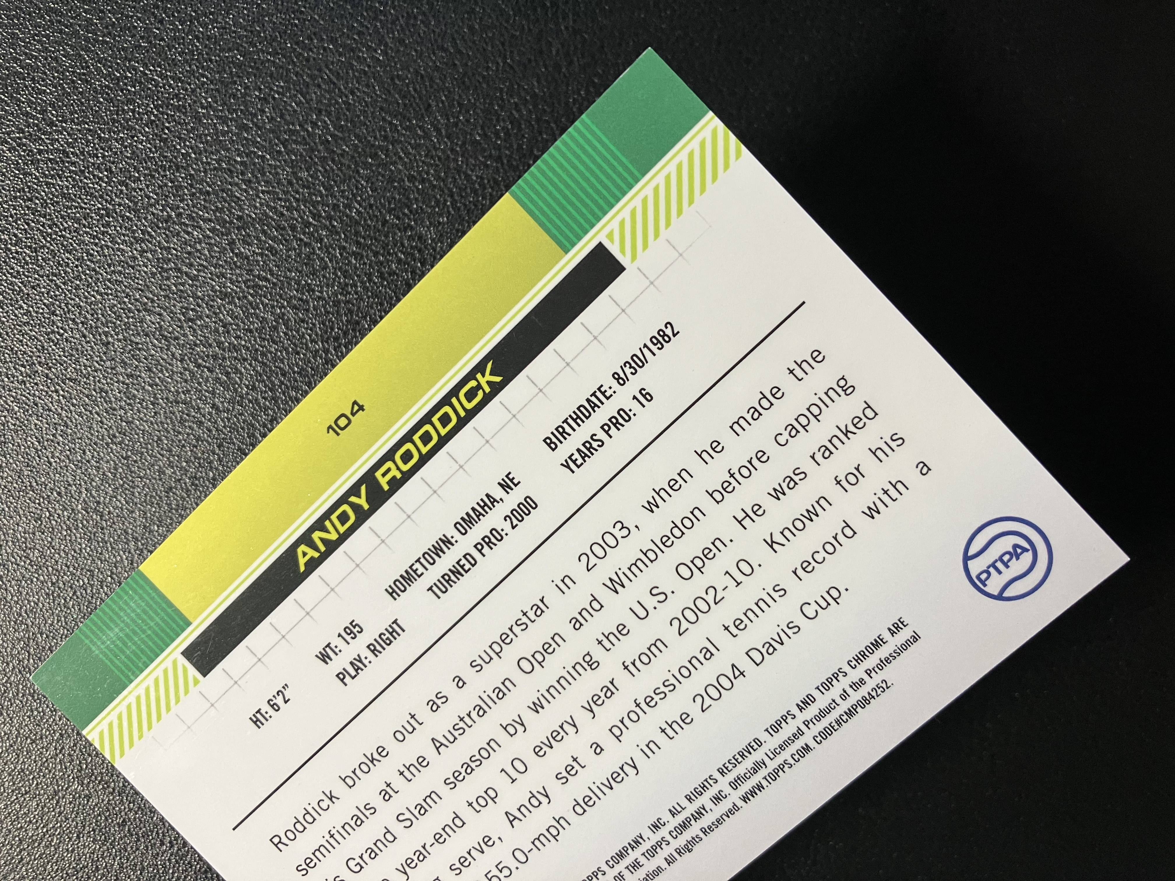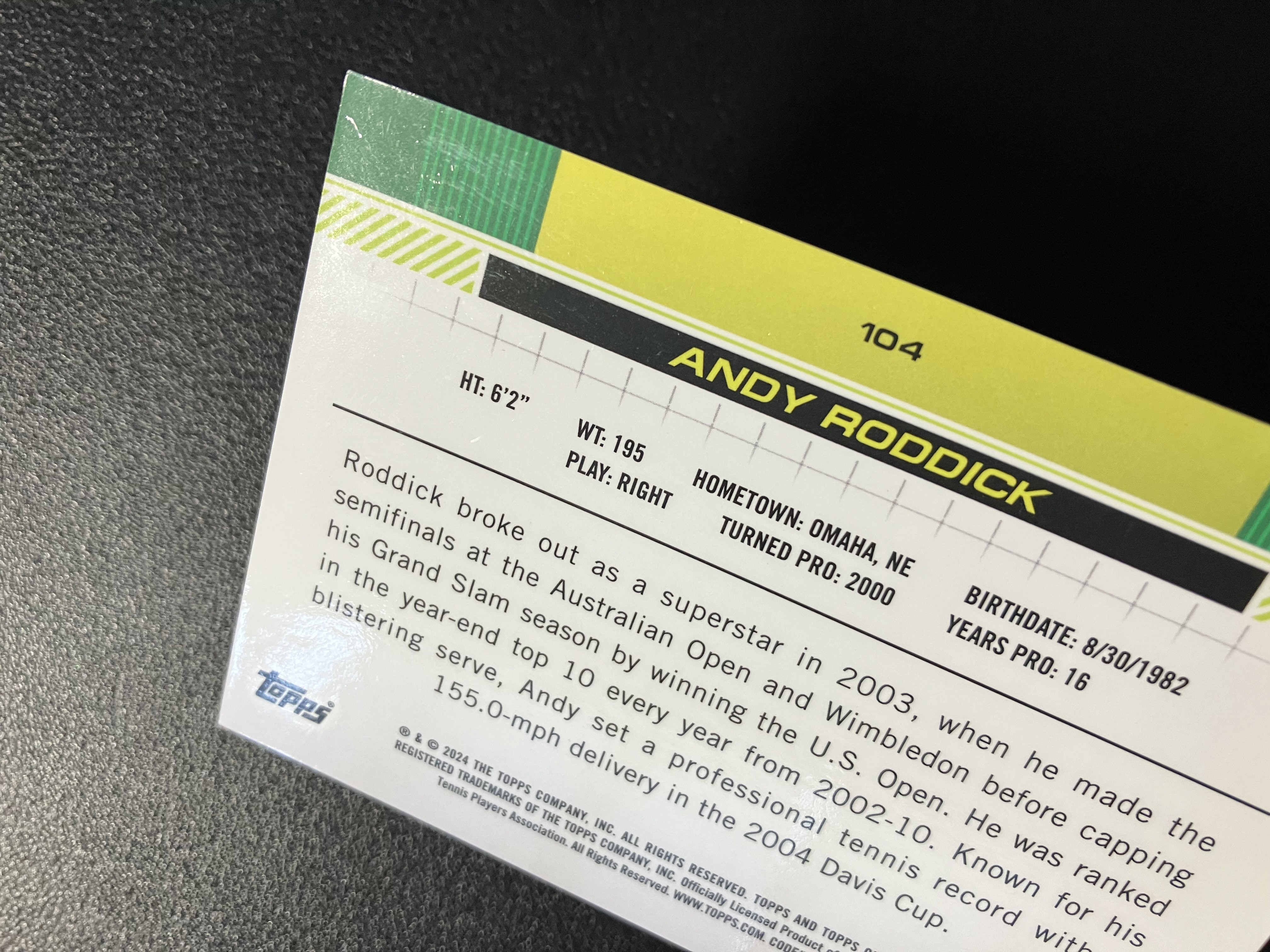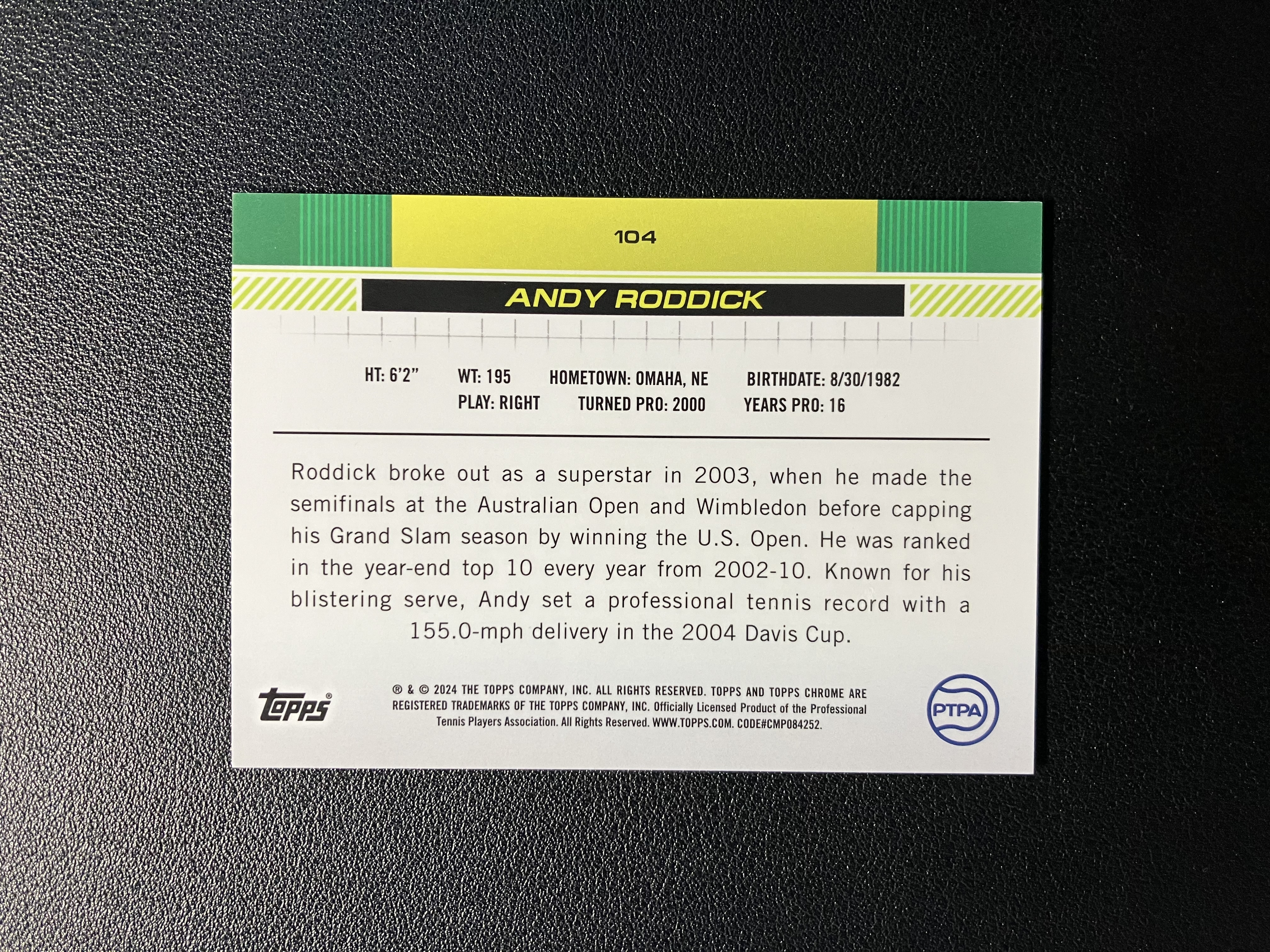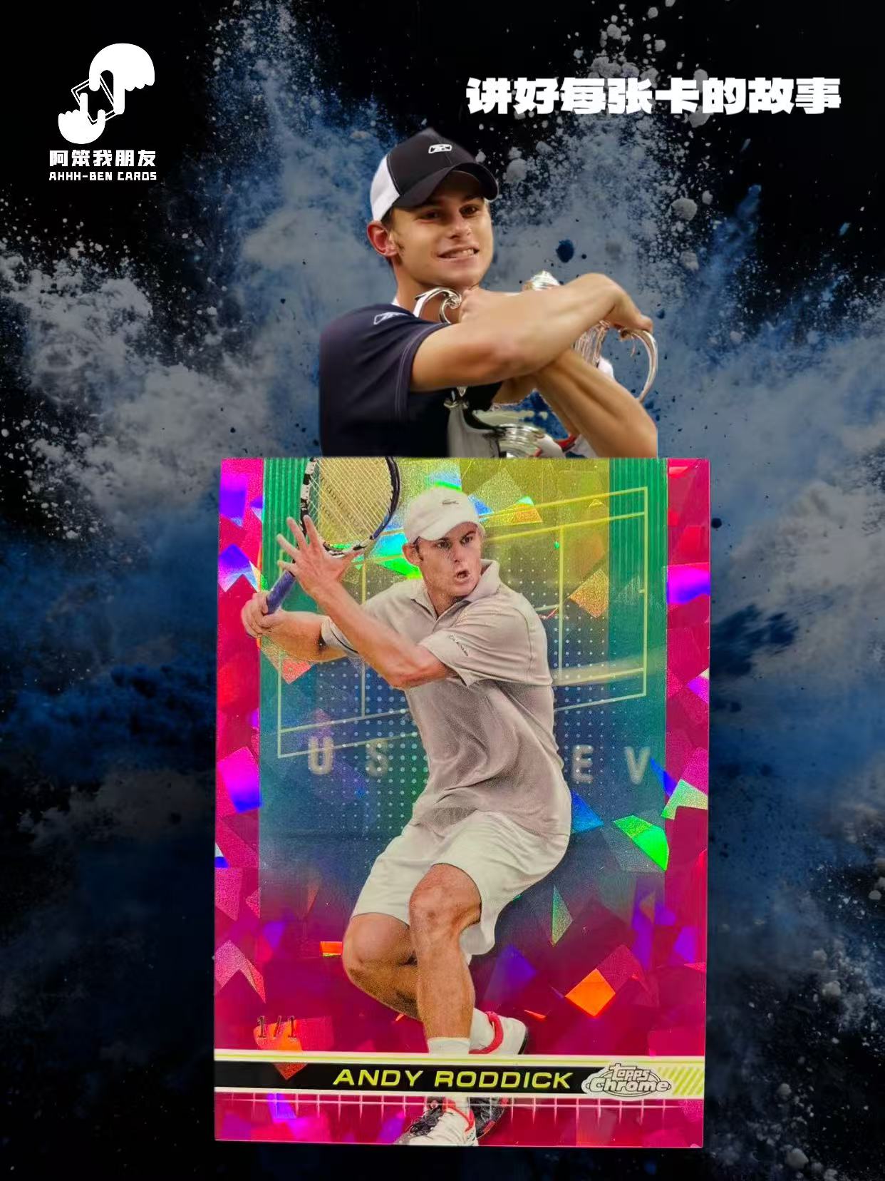 2024 Topps Chrome Tennis Andy Roddick 网球Chrome蓝宝石 ‌安迪-罗迪克 1/1编 ofo 帕帕拉恰 粉碎冰折 03年美网公开赛冠军 卡品如图 A115