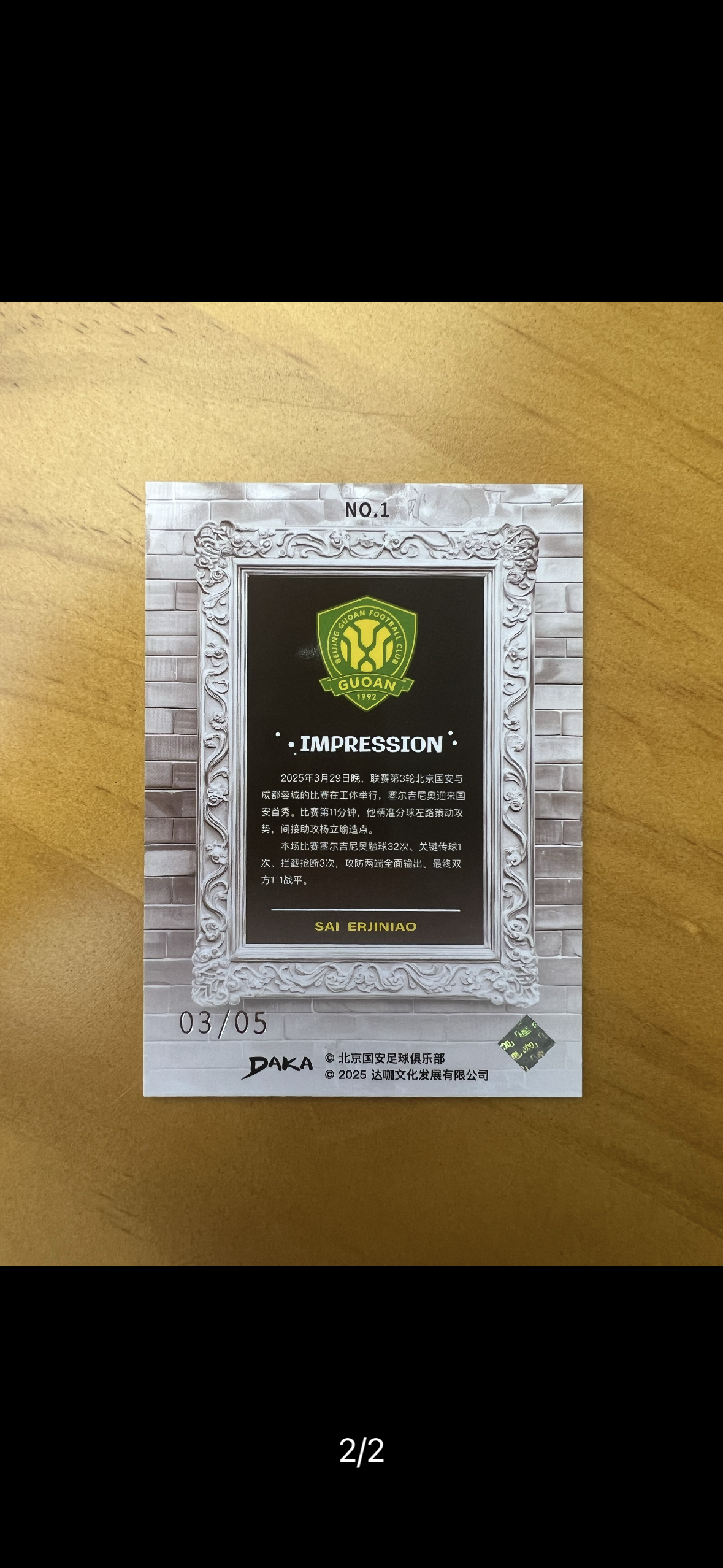 2025 DAKA 北京国安 队盒 塞尔吉尼奥 3/5编 金色平行 impression 特卡 相框特卡 小时刻 记录了首秀送出助攻 大热 凑套 极其稀少 卡品如图 C罗 梅西
