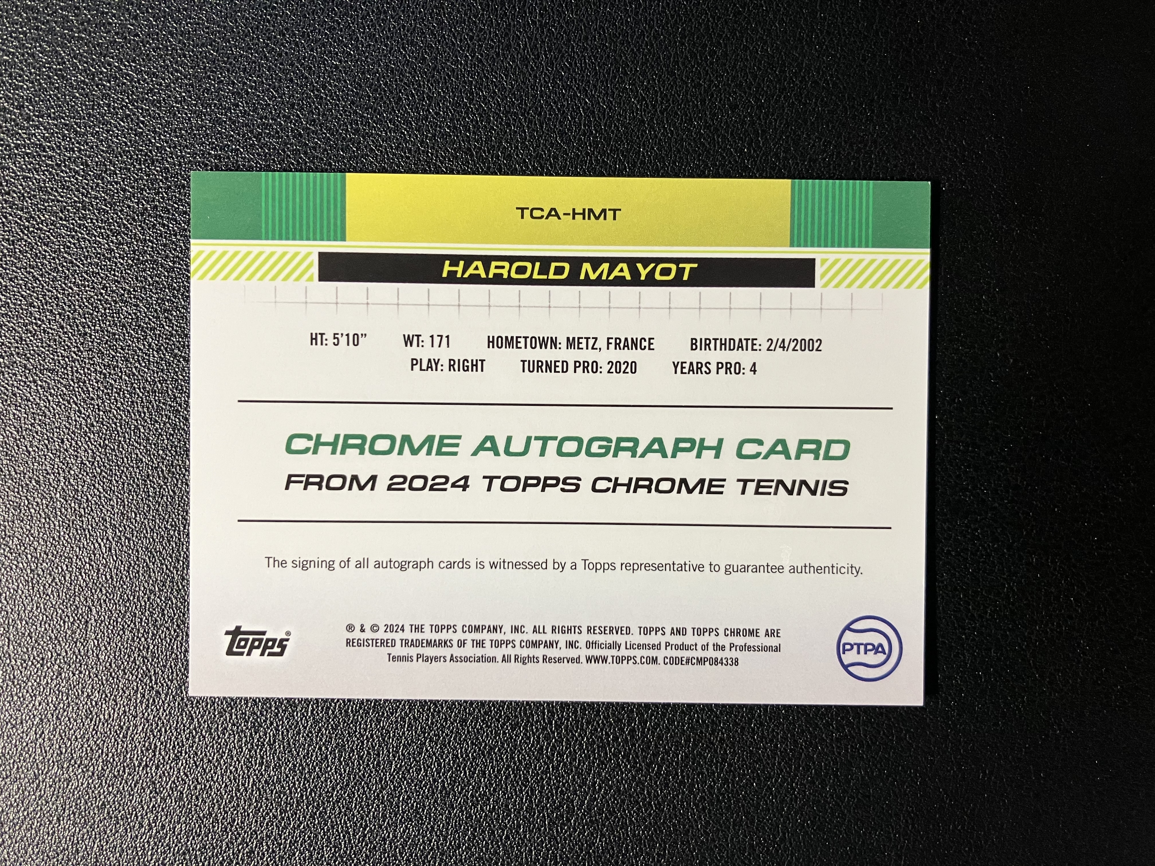 2024 Topps Chrome Harold Mayot 网球Chrome 哈罗德-马约 单人签 签字 20年澳网青少年组冠军 卡品如图 A115