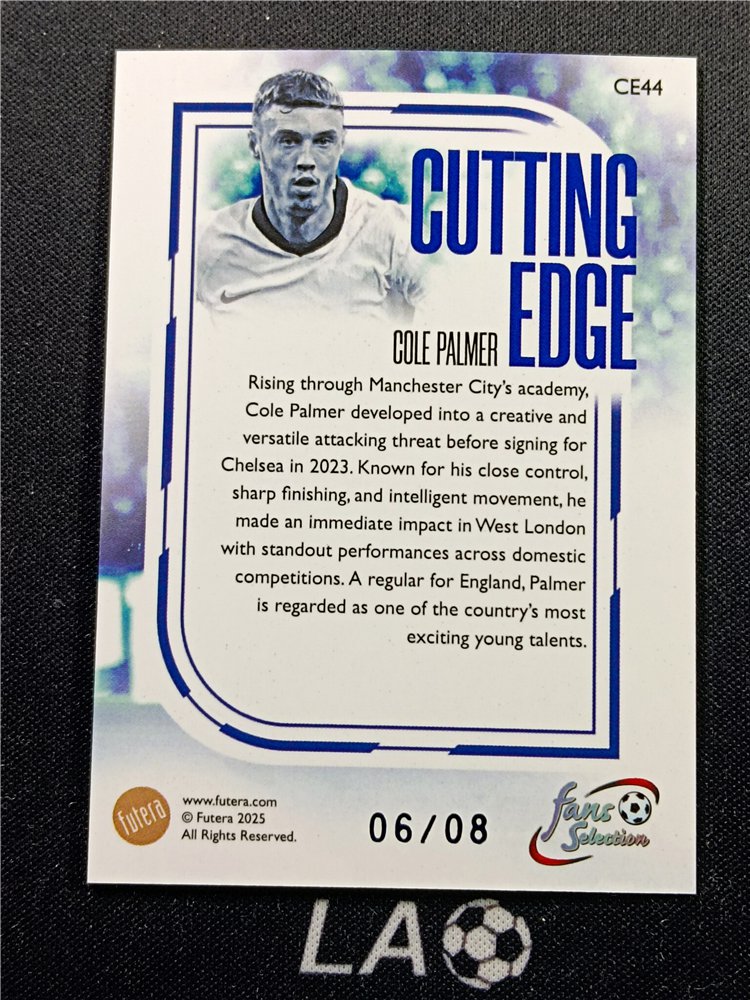 LA足球账号属于LA拍卖专注于足球的子品牌,因卡淘系统不支持跨号合并,所以分开发货计算邮费,寄售代卖咨询:laauction。卡品如图,请仔细看图,如果无图片特殊展示瑕疵均为通行品相,一般prizm optic 等系列薄卡的小划痕,国宝IMM等系列厚卡的小白边小白角,都属于通行品相。艺术家 品控勿扰。中标后请等我们合并订单再点确认付款。付款时卡淘留言说明累计或邮寄(我们会按照留言的先后顺序处理发货,请不要反复留言以免耽误给您回复)为了方便结算和卡片的累计查找,我们只合并当天的订单。邮费-顺丰(默认陆运):北京13元,非偏远外地18元,新疆西藏等偏远只发到付!超重只发到付!1000元以上的订单,建议买家自行保价,或用顺丰到付,所有快递未经保价,运输途中的损坏和丢失请于快递联系解决。(本店不支持任何普快发货,破损及丢失率太高)介意勿拍!中标可累计,累计时间2个月,每标累计金额不能超过500元,超过累计时间出现丢失或品相问题的,卡片问题由买家自行承担。累计的卡片请先付清卡款,然后卡淘上与我们联系操作,请于截标后3天转好,截标后3天未确认收到付款,一律卡淘投诉处理。