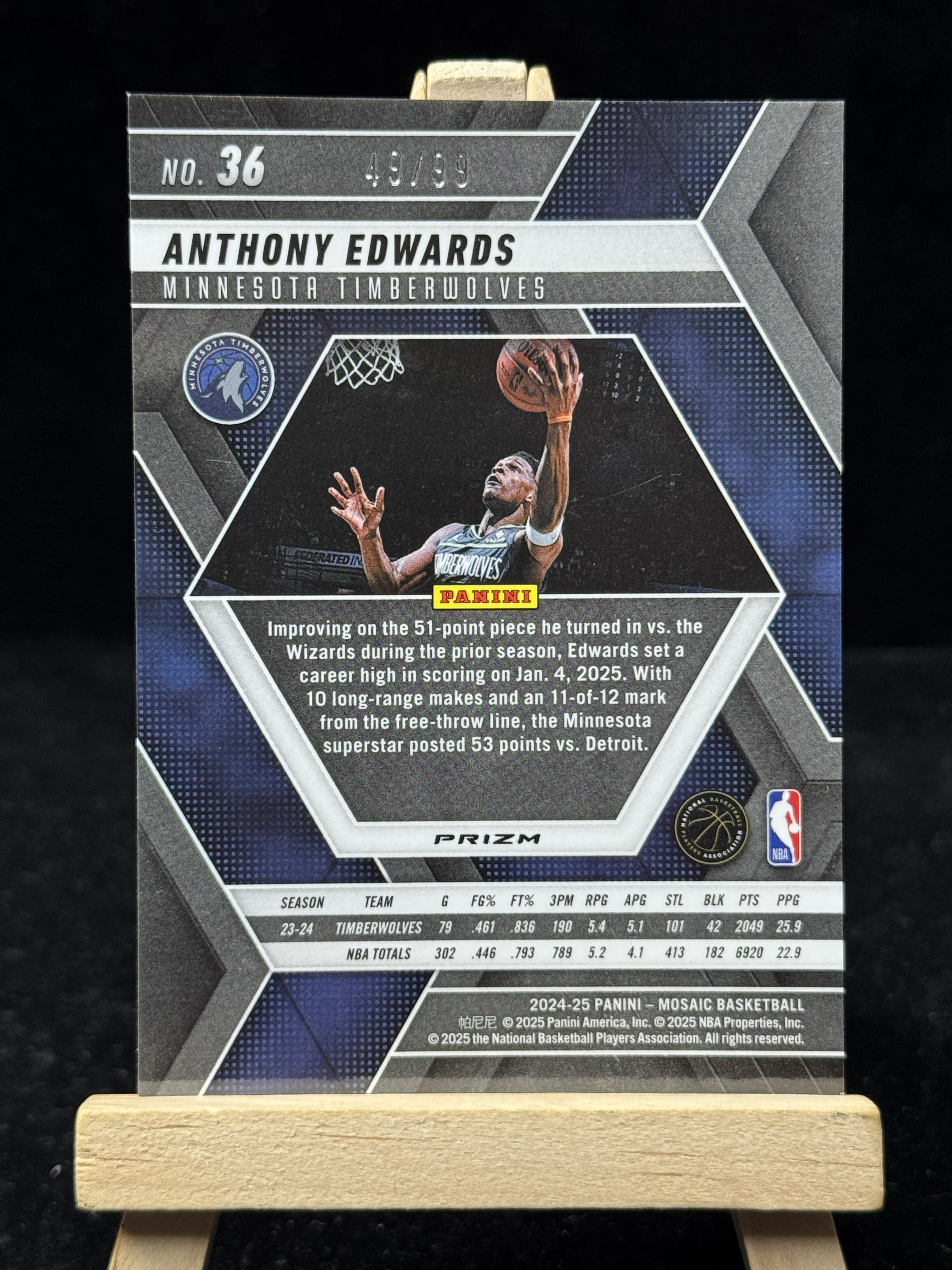 【Ai拍卖】2024-25 Panini Mosaic Anthony Edwards 安东尼 爱德华兹 华子 马赛克 红泡泡折 49/99编 折射 泡泡折 红折 53-ccc