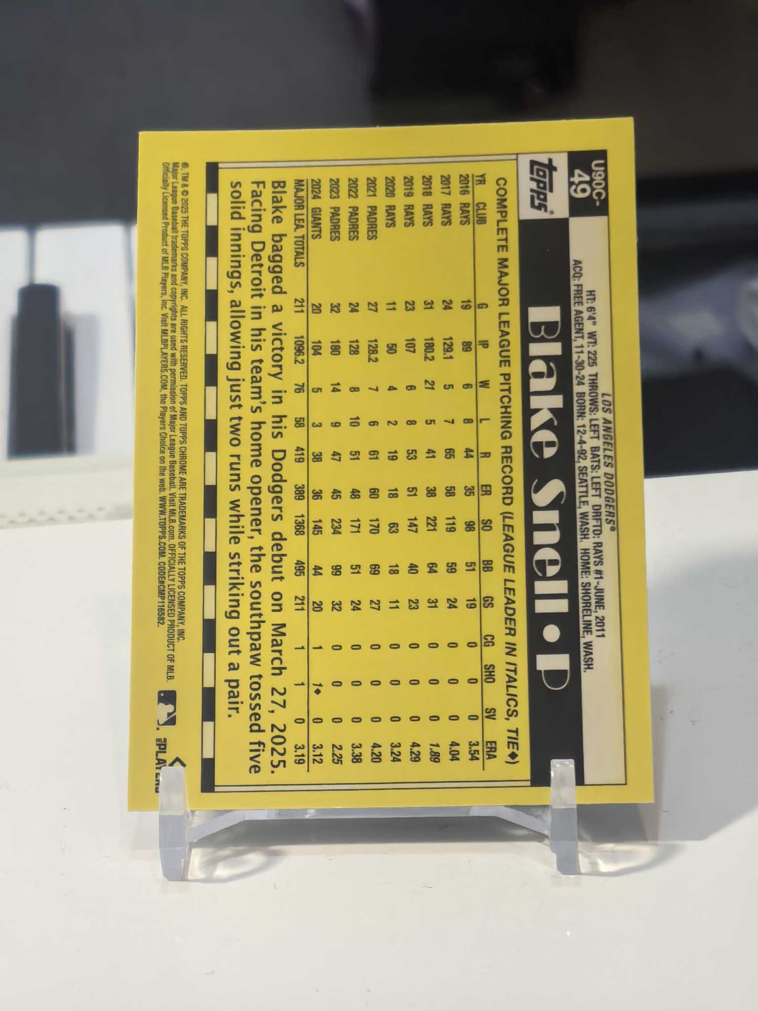 2025 Topps Update Blake Snell 【KS拍卖】洛杉矶道奇 先发投手 斯内尔/150编蓝mojo折射 35周年,银包独占,非常漂亮