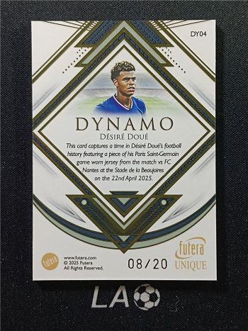 LA足球账号属于LA拍卖专注于足球的子品牌,因卡淘系统不支持跨号合并,所以分开发货计算邮费,寄售代卖咨询:laauction。卡品如图,请仔细看图,如果无图片特殊展示瑕疵均为通行品相,一般prizm optic 等系列薄卡的小划痕,国宝IMM等系列厚卡的小白边小白角,都属于通行品相。艺术家 品控勿扰。中标后请等我们合并订单再点确认付款。付款时卡淘留言说明累计或邮寄(我们会按照留言的先后顺序处理发货,请不要反复留言以免耽误给您回复)为了方便结算和卡片的累计查找,我们只合并当天的订单。邮费-顺丰(默认陆运):北京13元,非偏远外地18元,新疆西藏等偏远只发到付!超重只发到付!1000元以上的订单,建议买家自行保价,或用顺丰到付,所有快递未经保价,运输途中的损坏和丢失请于快递联系解决。(本店不支持任何普快发货,破损及丢失率太高)介意勿拍!中标可累计,累计时间2个月,每标累计金额不能超过500元,超过累计时间出现丢失或品相问题的,卡片问题由买家自行承担。累计的卡片请先付清卡款,然后卡淘上与我们联系操作,请于截标后3天转好,截标后3天未确认收到付款,一律卡淘投诉处理。