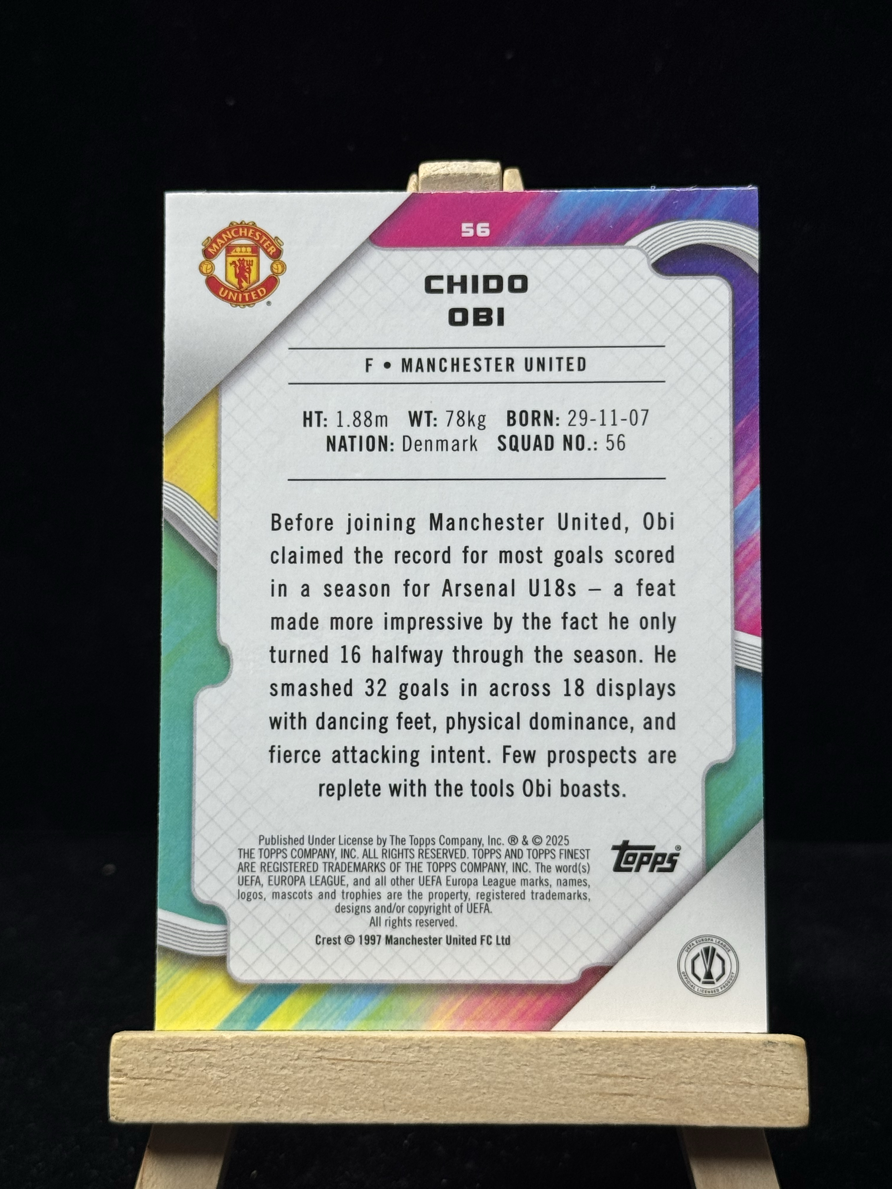 【Ai拍卖】2025 Topps Finest CHIDO obi RC 曼彻斯特联 奇德 奥比 马丁 RC新秀 299编 紫折 折射  68-只想