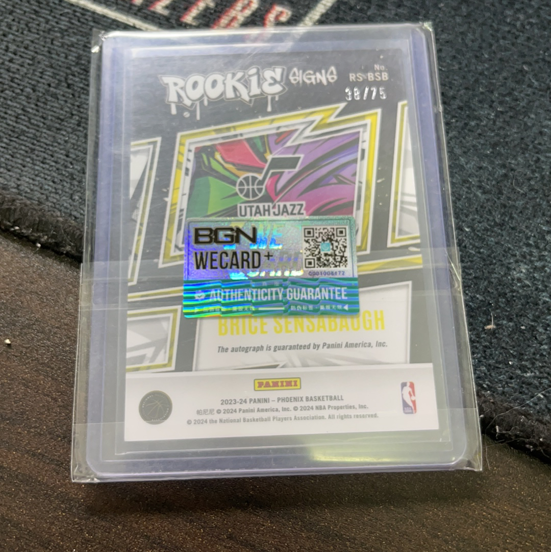 2023-24 Phoenix 凤凰 爵士队 Brice Sensabaugh 布赖斯 森萨博 折射 签字 贴签 新秀 rc 仔