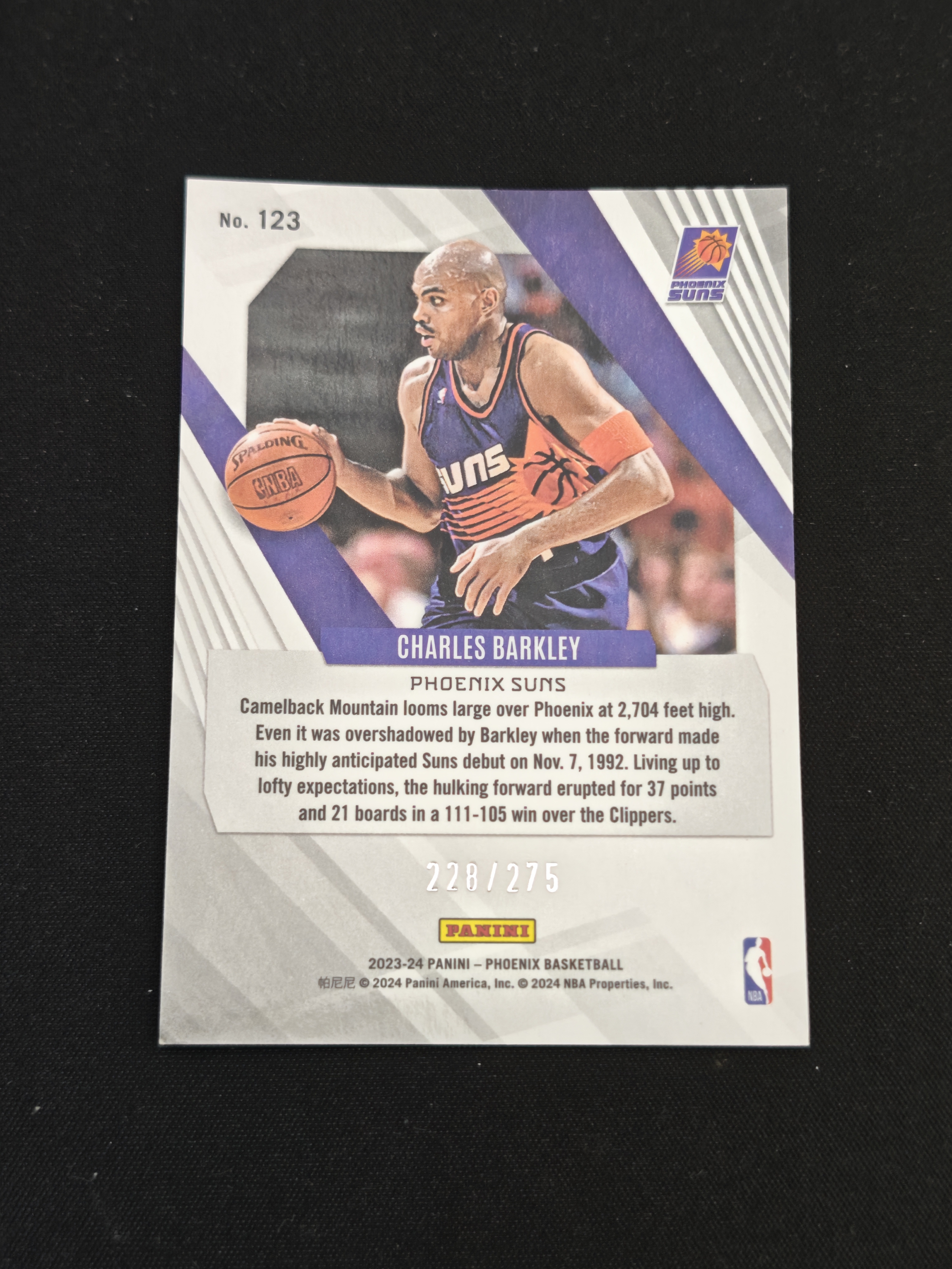 2023-24 Panini phoenix Charles Barkley 【小V代拍】查尔斯 巴克利 飞猪 太阳 凤凰 带编 228/275 碎冰折 折射 卡品如图【Leko熊】j