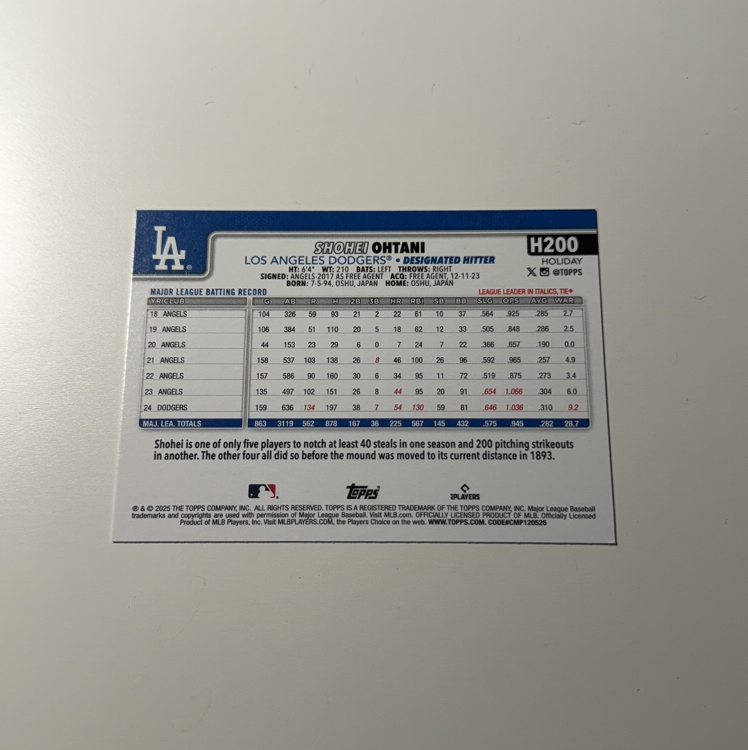 2025 Topps 【锡安代卖】 累计照常 棒球mlb Holiday 棒球假日 大谷翔平 Shohei Ohtani 假日限定平行 洛杉矶道奇 日本二刀流 卡品如图 阿坚