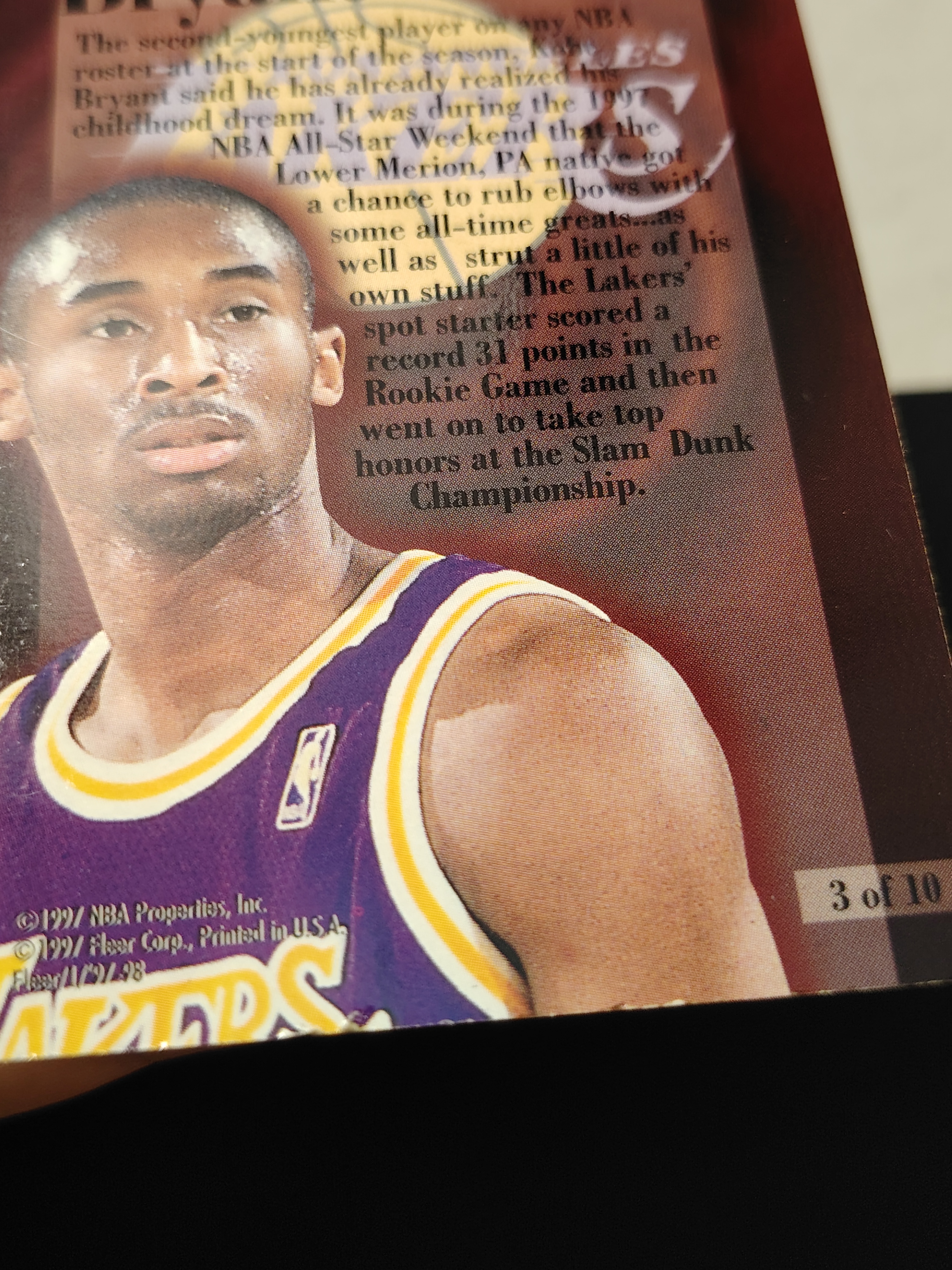 1997-98 Fleer rookie rewind Kobe Bryant 3 of 10 insert