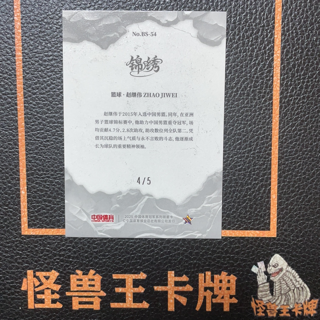 (怪兽拍卖) GSW-G37 2025 奇卡 QICA 中国体育 锦绣 赵继伟 4/5编 低编 绿折 卡品如图