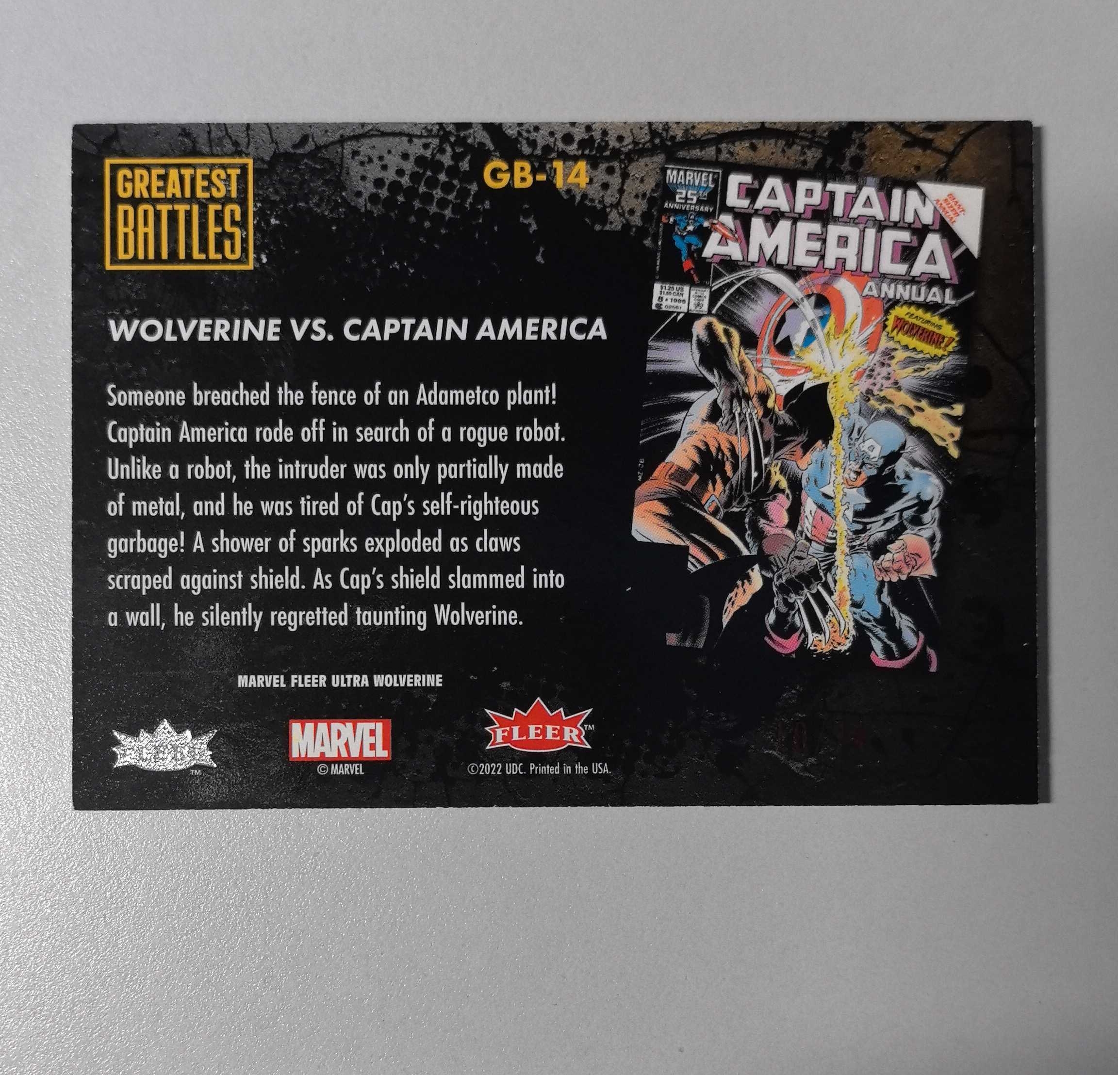 2025 Topps Marvel (MCU) 【锡安代卖】 2022 fleer 漫威 金刚狼 74编红平行 金刚狼大战美国队长 Wolverine Captain America 卡品如图 澳洲