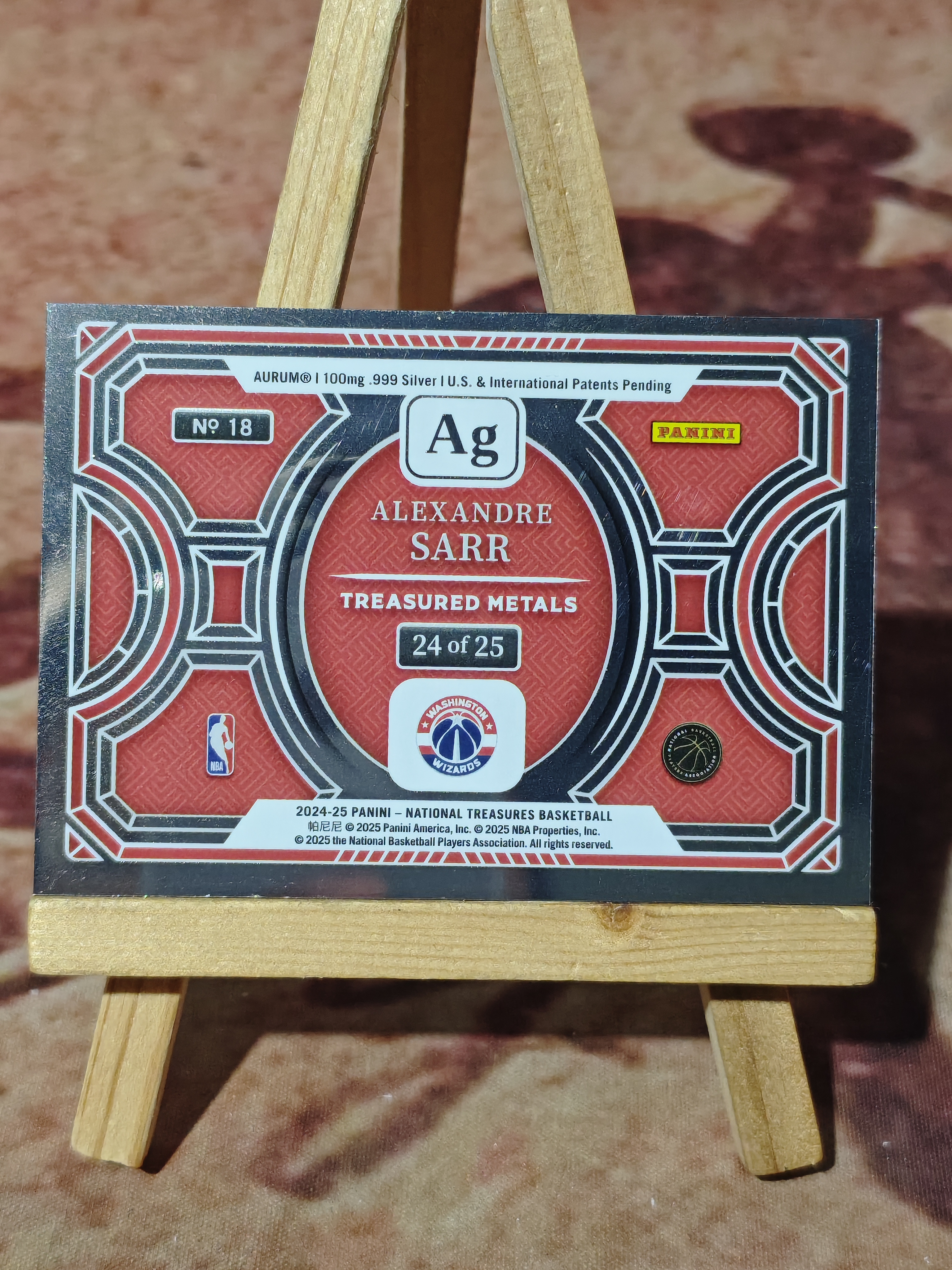 2024-25 Panini National Treasures Alex Sarr RC 【科科代卖zqc】国宝 奇才新秀 萨尔 Metal 100毫克 999纯银 /25编 铁板 金属 轻印看图