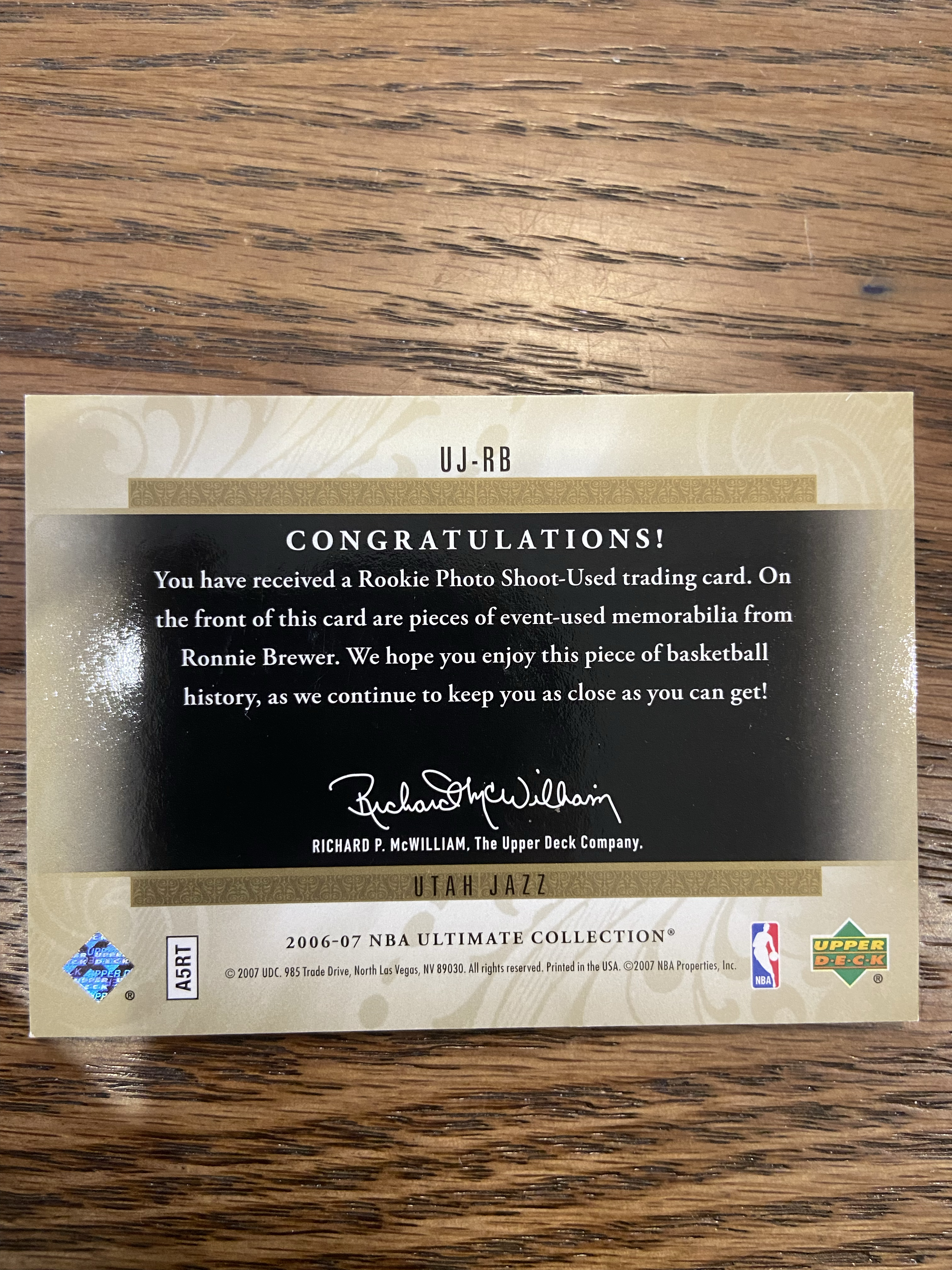 2006-07 Upper Deck Exquisite Ronnie Brewer RC UD Utah Jazz 爵士 罗尼 布鲁尔 物料卡 25编 经典卡种 1127