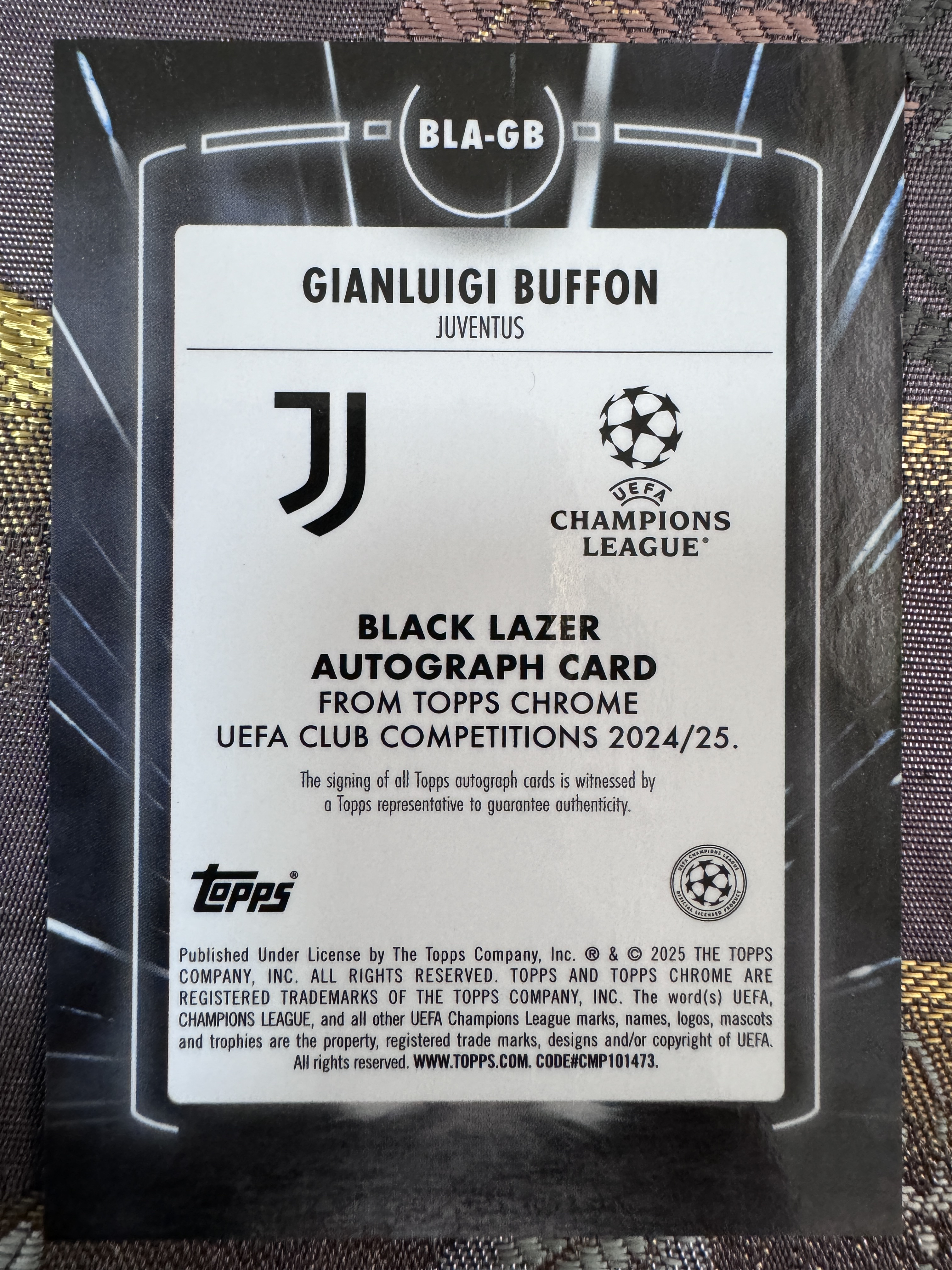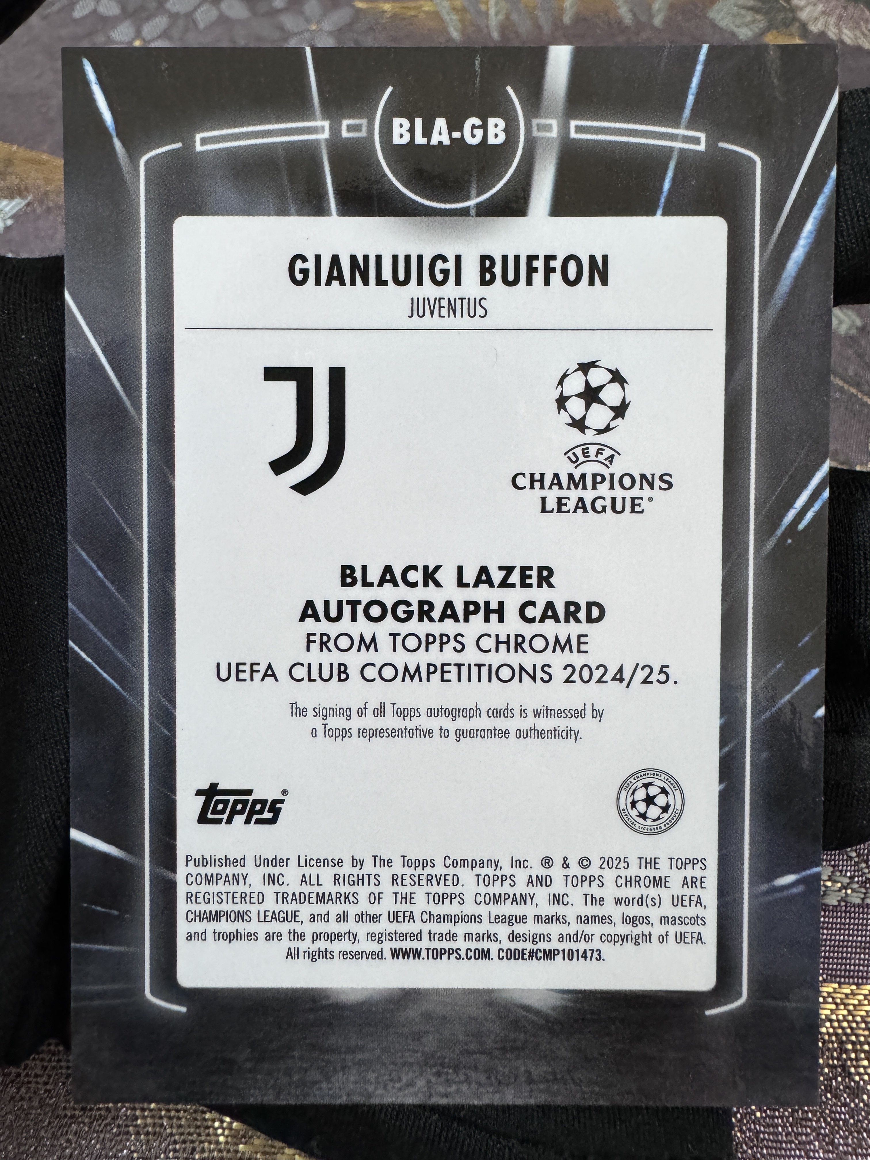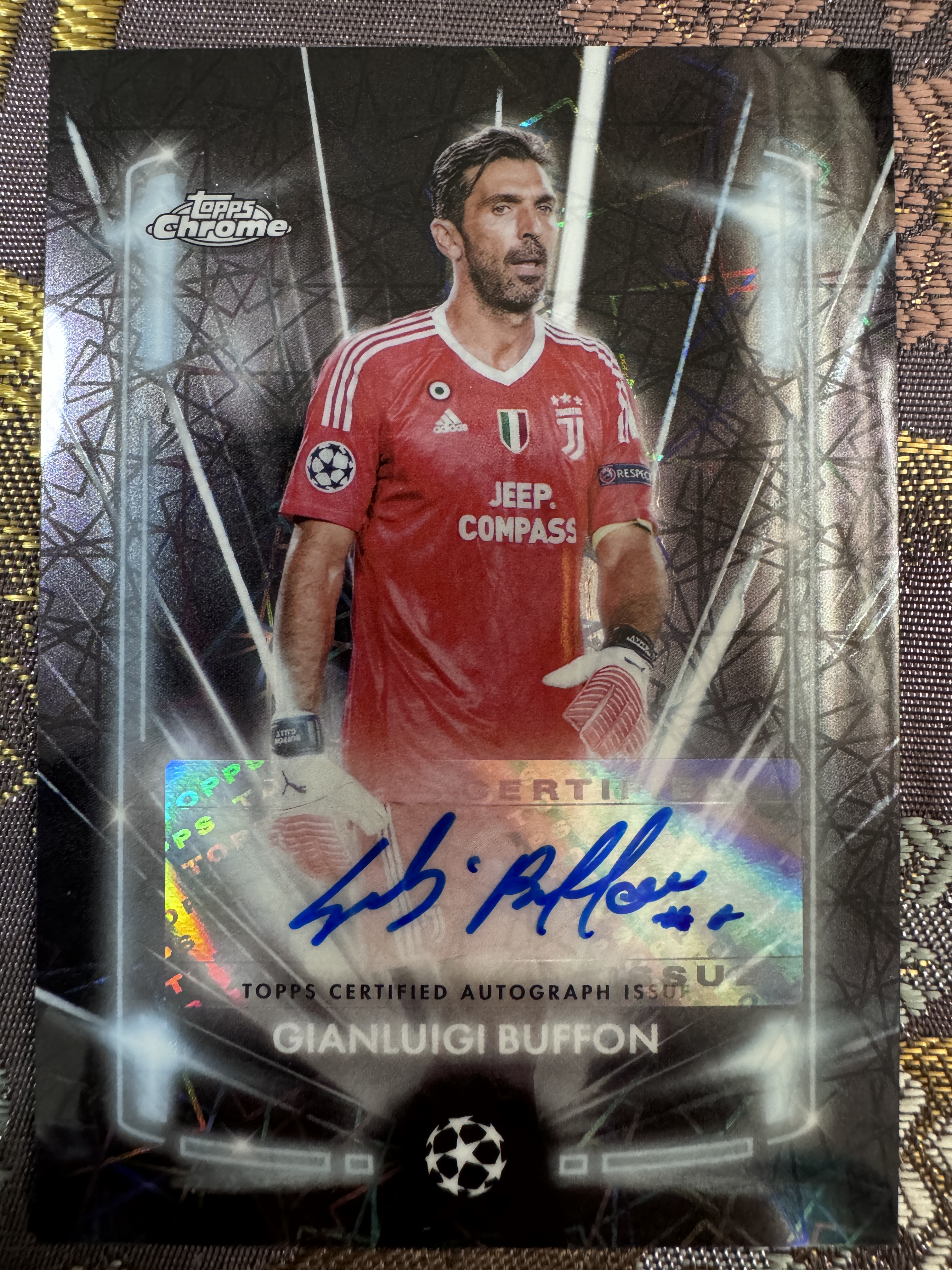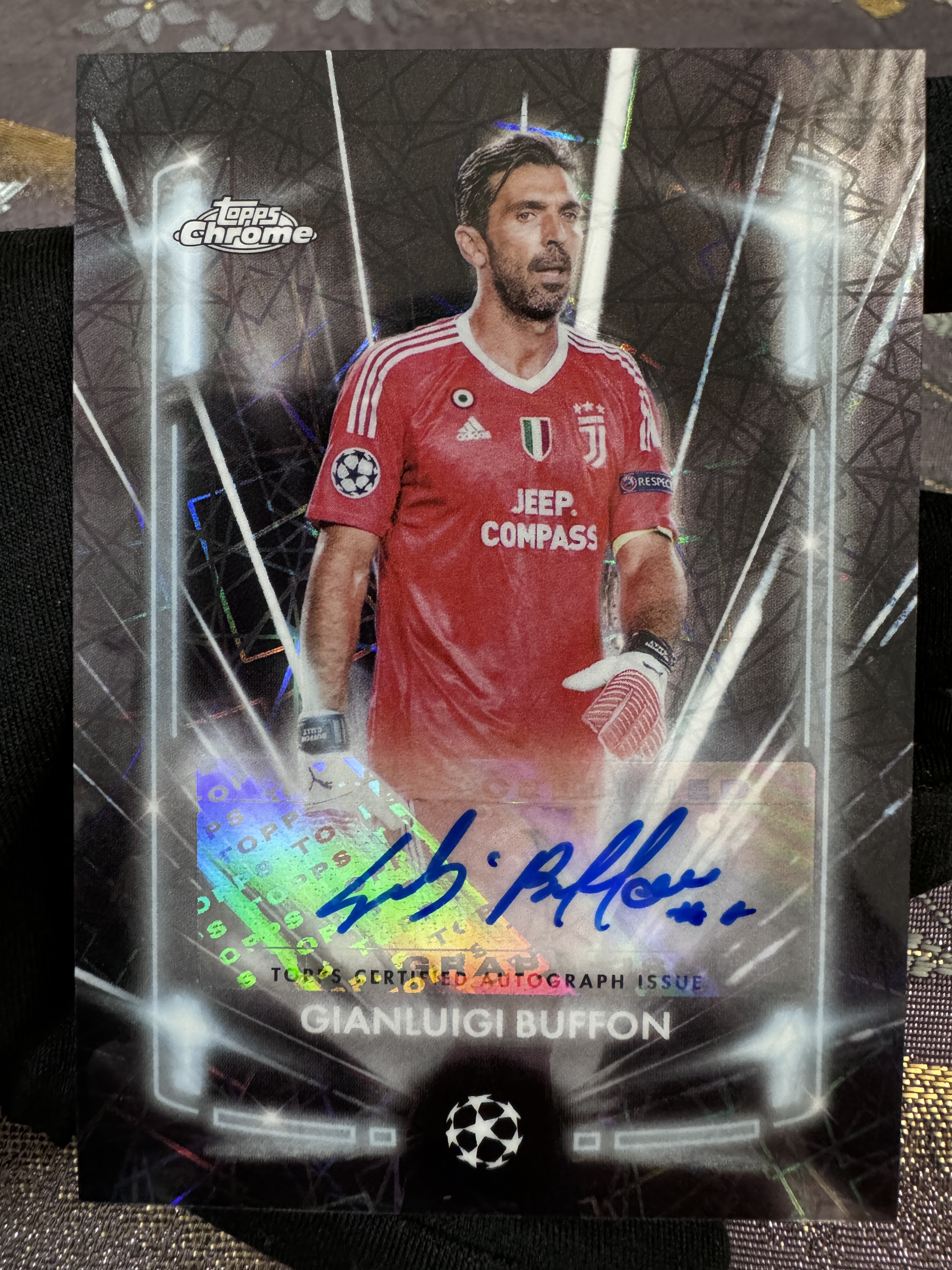 2025 Topps Chrome Gianluigi Buffon 欧冠 chrome 尤文图斯 意大利 超级巨星 小将 布冯 顶级门将 投资大热 大比例 黑镭射 激光签 签字 完美墨迹 实卡精美