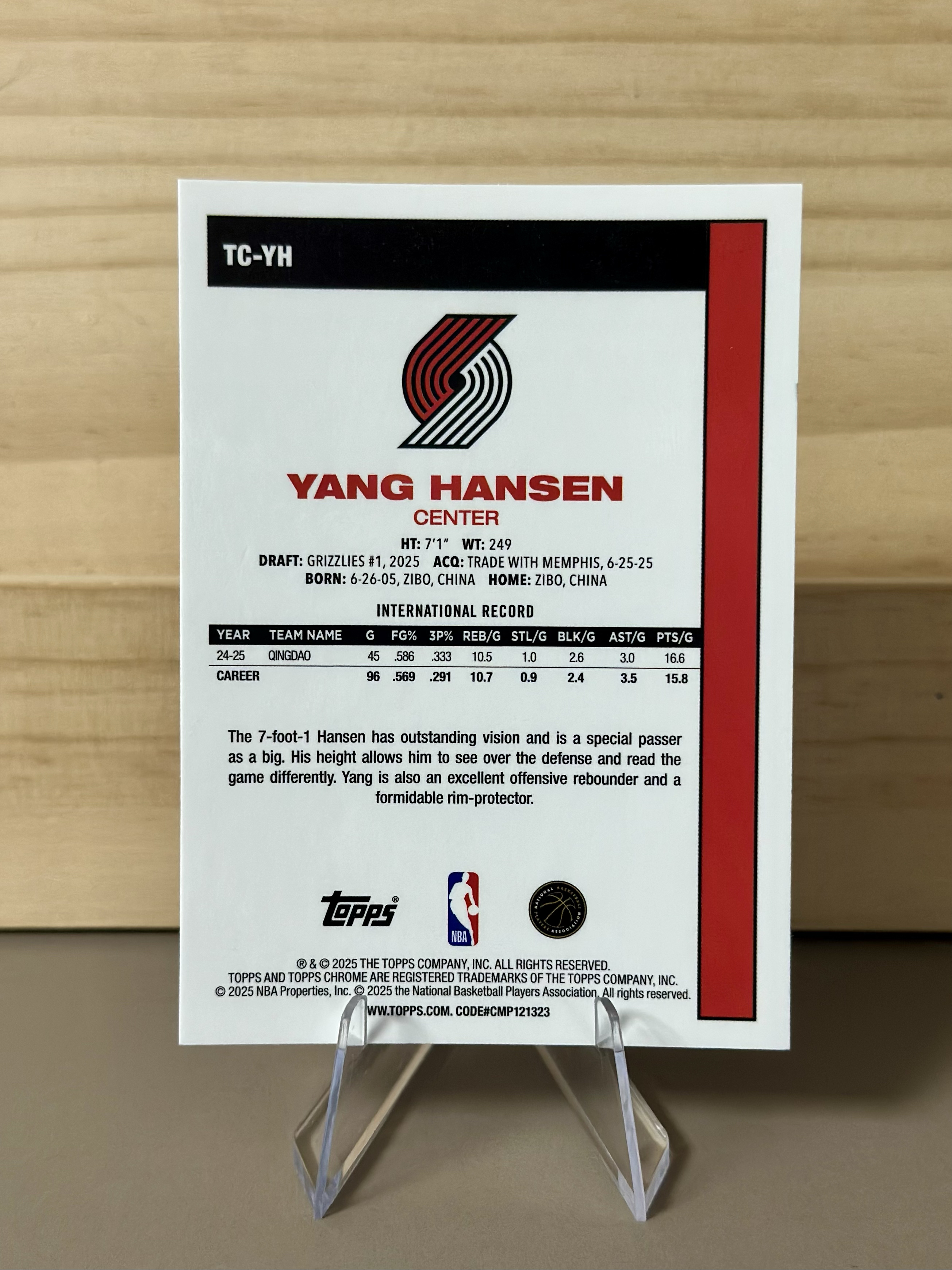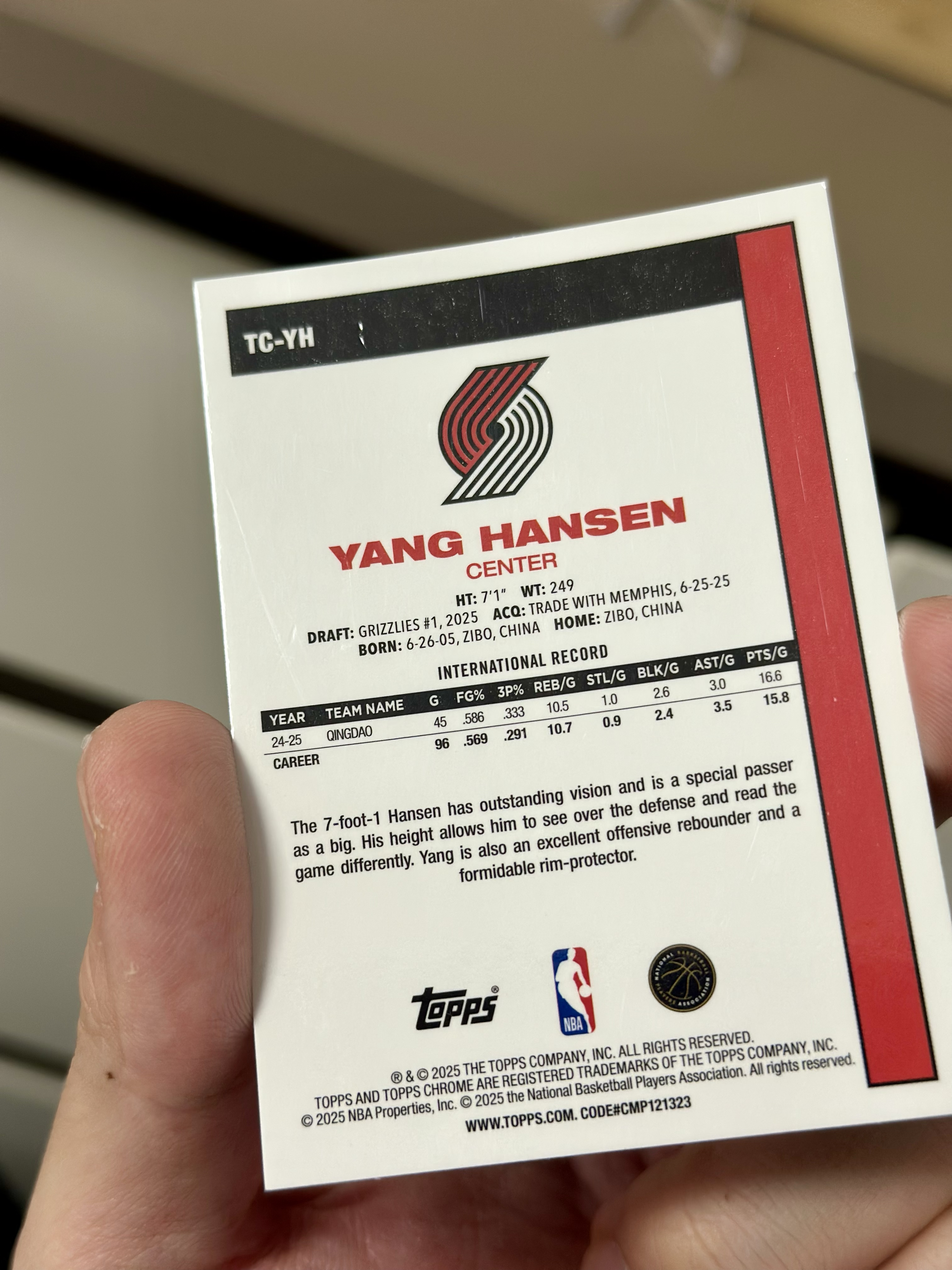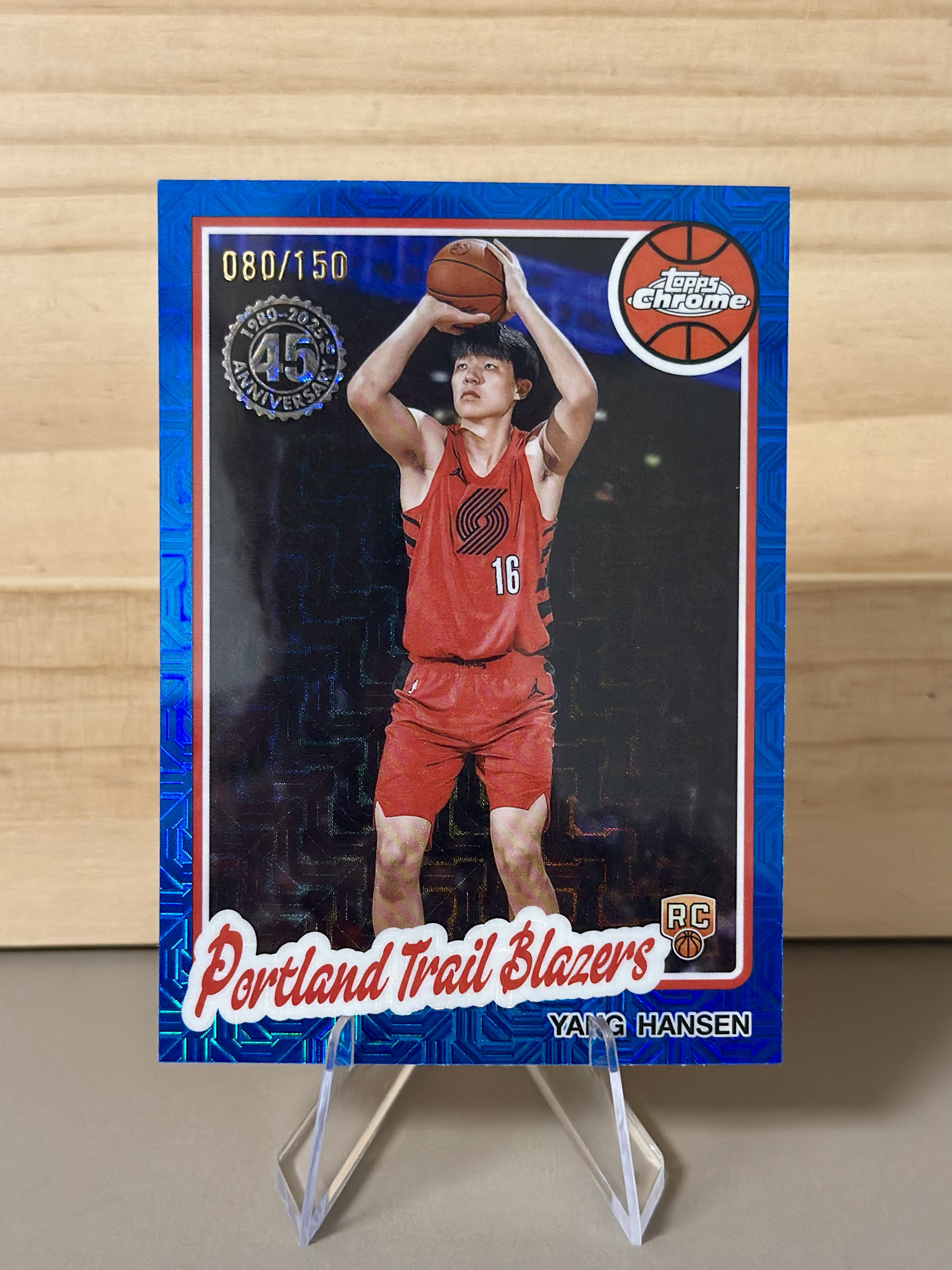 2025-26 Topps Flagship 杨瀚森 RC Topos 新秀 杨瀚森 80/150编 蓝折 蓝mojo 折射 开拓者 卡品细节如图