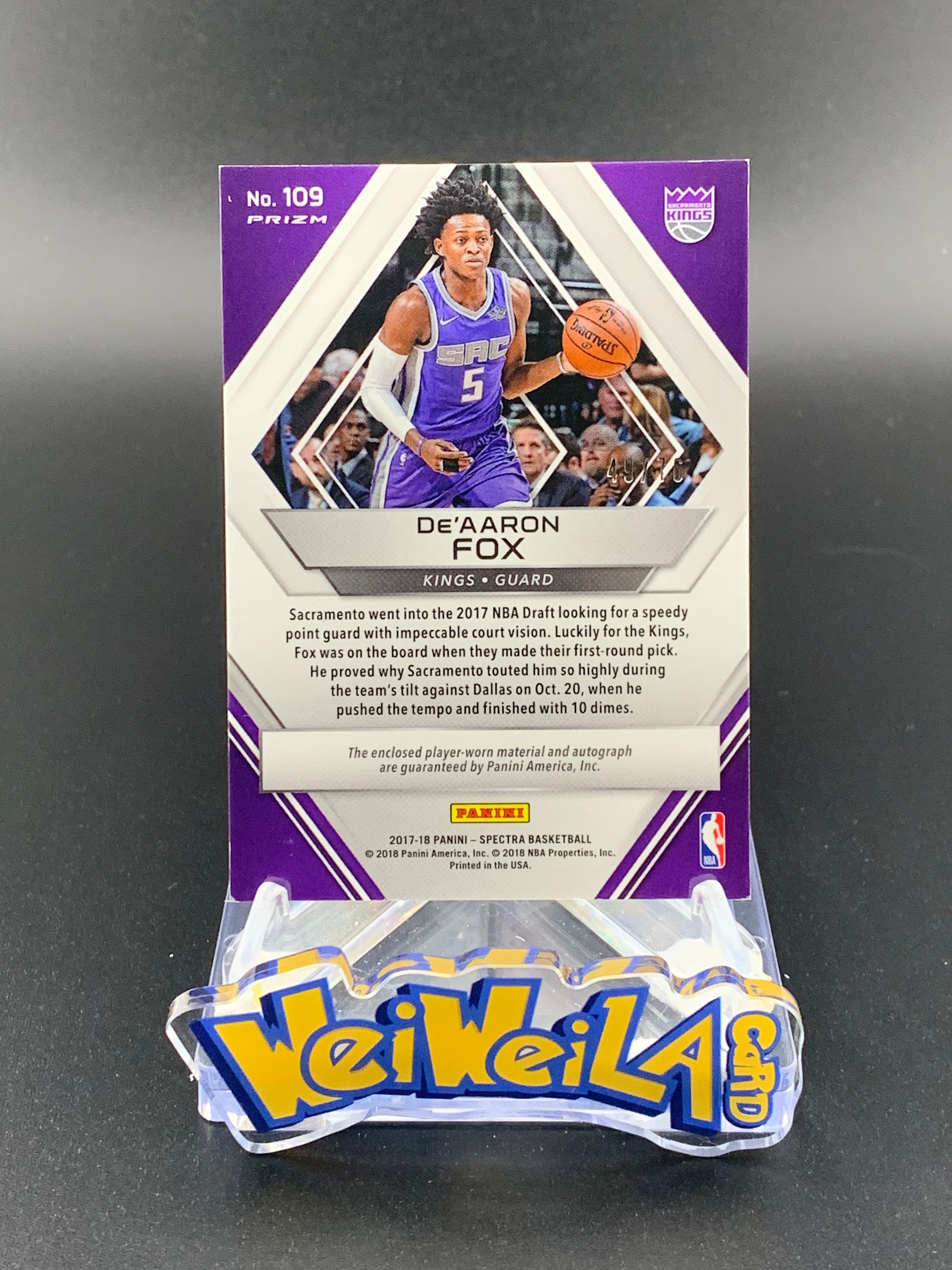 【微微辣代卖】H2-01Ki咪哥 De’Aaron Fox 达龙福克斯 2017-18 Spectra 光谱 RC新秀 /76编 签字 卡签 球衣物料 蓝泡泡折射 国王队