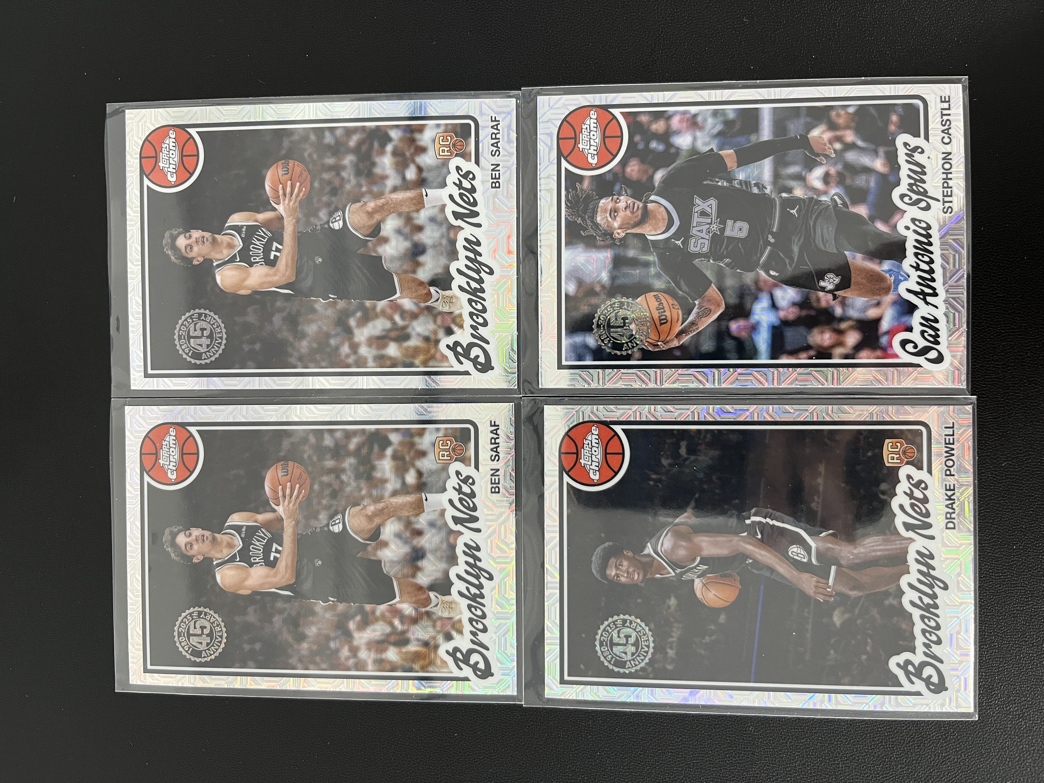 4.卡品如图请看仔细,照片很清楚!请看清楚再拍!折射系列以及马赛克折射系列经常会有一道折射横线 或点状痕 是印刷问题不属于卡品残次范畴,介意者请勿拍。厚卡有轻微白边属于正常现象!如无特殊说明均为通行品。IMM,NOIR, 金书,小真金,国宝,等厚卡系列卡品一般,边角经常有小问题介意勿拍!老卡有白边白角属于正常卡品,镜面卡签字经常有横条竖条印刷划痕属于正常通行品相!评级卡砖上的划痕和破损以及评级砖内的卡有卡品问题一律不属于品相问题