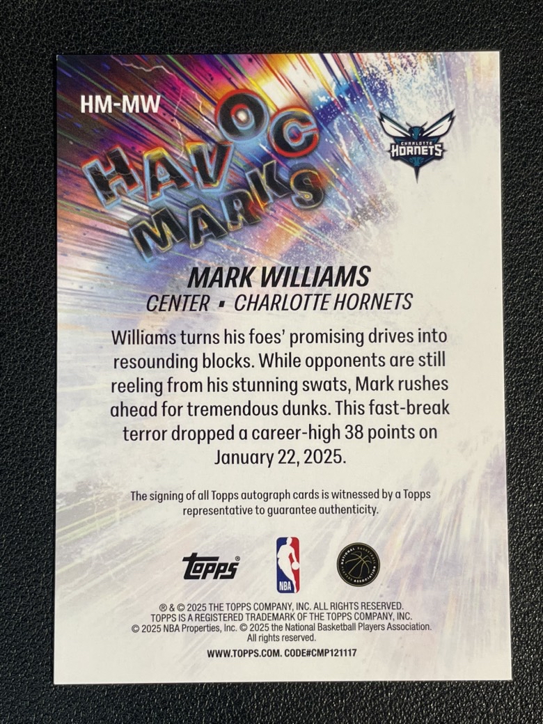 2025 Topps NBA Flagship Mark Williams 484 马克 威廉姆斯 黄蜂 Havoc Marks 签字 狂潮印记签 微瑕如图 卡品如图 尖叫代拍 pink