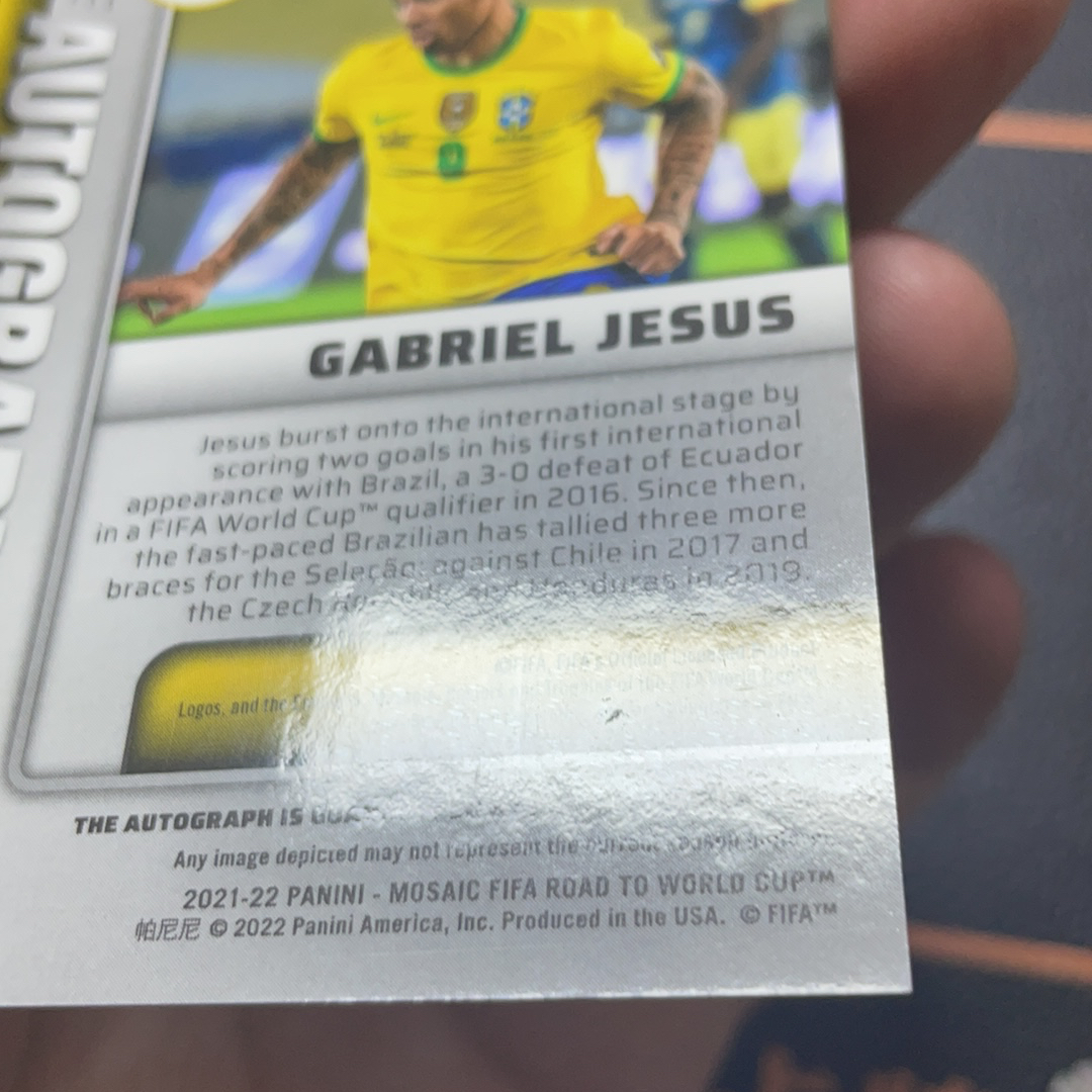 (怪兽拍卖) GSW-F85 2021-22 Panini Mosaic World Cup Gabriel Jesus 世界杯 马赛克 巴西 阿森纳 曼城 热苏斯 签字 剧本签 马赛克折 图34瑕