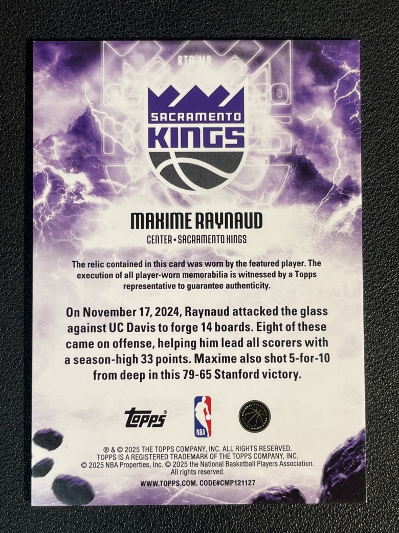 2025-26 Topps NBA Flagship Maxime Raynaud RC 490 马克西姆 雷诺 国王 新秀 应势而起 球衣 物料 微瑕如图 卡品如图 pink
