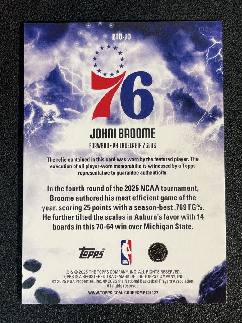 2025-26 Topps NBA Flagship Johni Broome RC 491 约翰尼 布鲁姆 76人 新秀 应势而起 球衣 物料 微瑕如图 卡品如图 pink