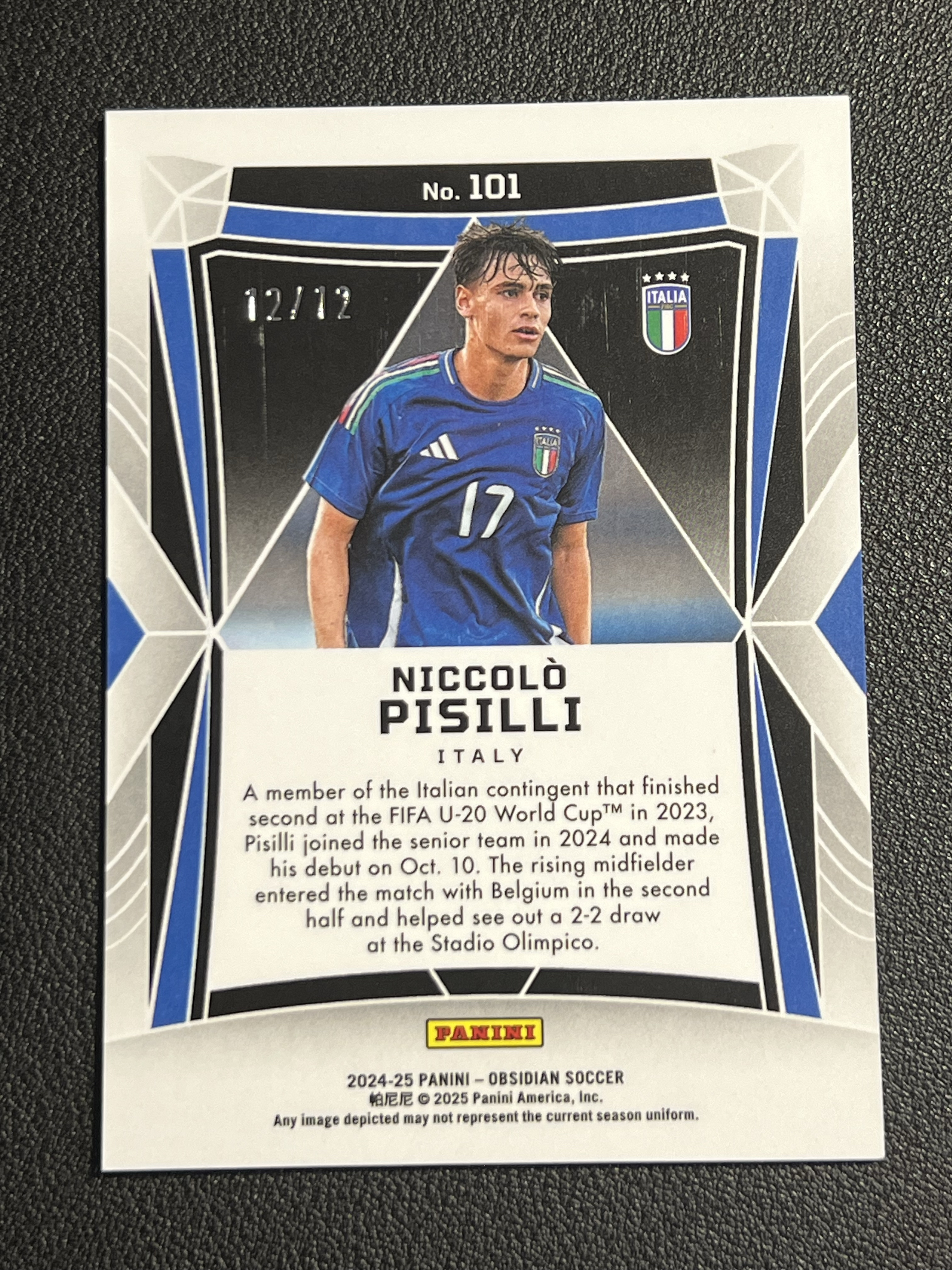 2024-25 Panini Obsidian NICCOLO PISILLI RC 尼克洛 皮西利 新秀 RC 12/12 尾编 黑曜石 罗马 意大利 收藏必备